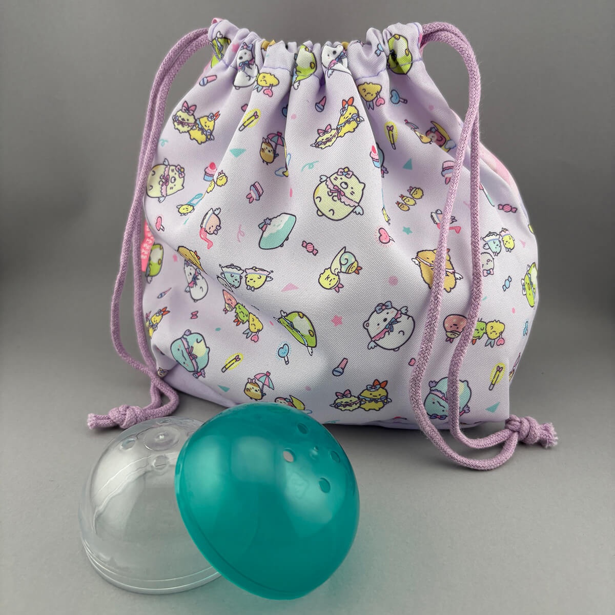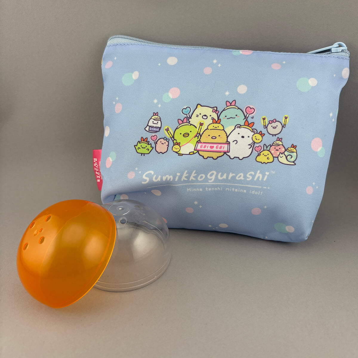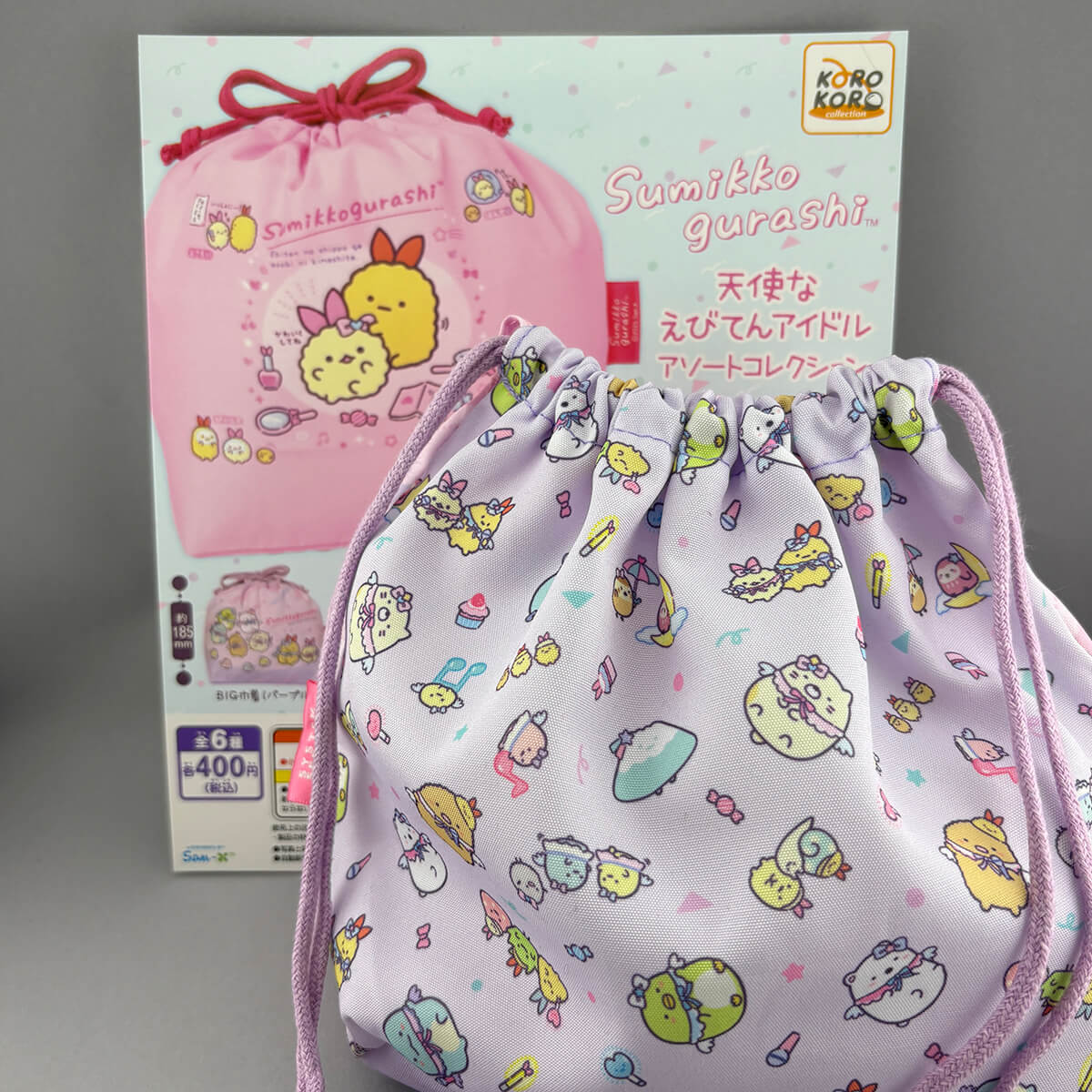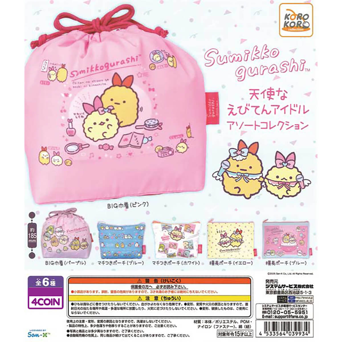 Sumikko Gurashi Angel Ebiten Idol Pouch Gachapon Capsule Collectible by Koro Koro. Highly collectible and authentic Japanese gachapon capsule containing one of six different pouches featuring an assortment of Sumikko Gurashi characters. Each pouch is made from nylon with a zip or drawstring fastening.