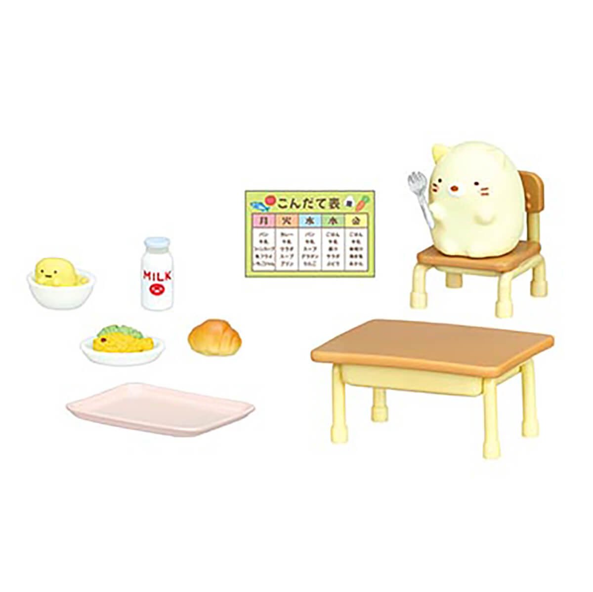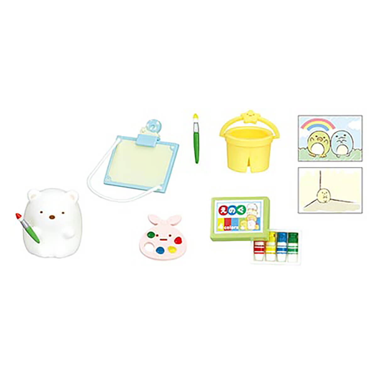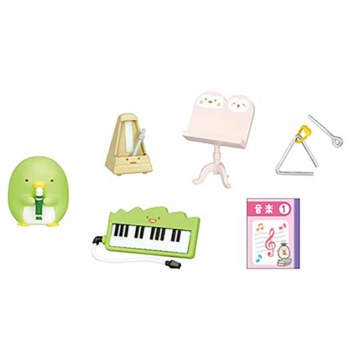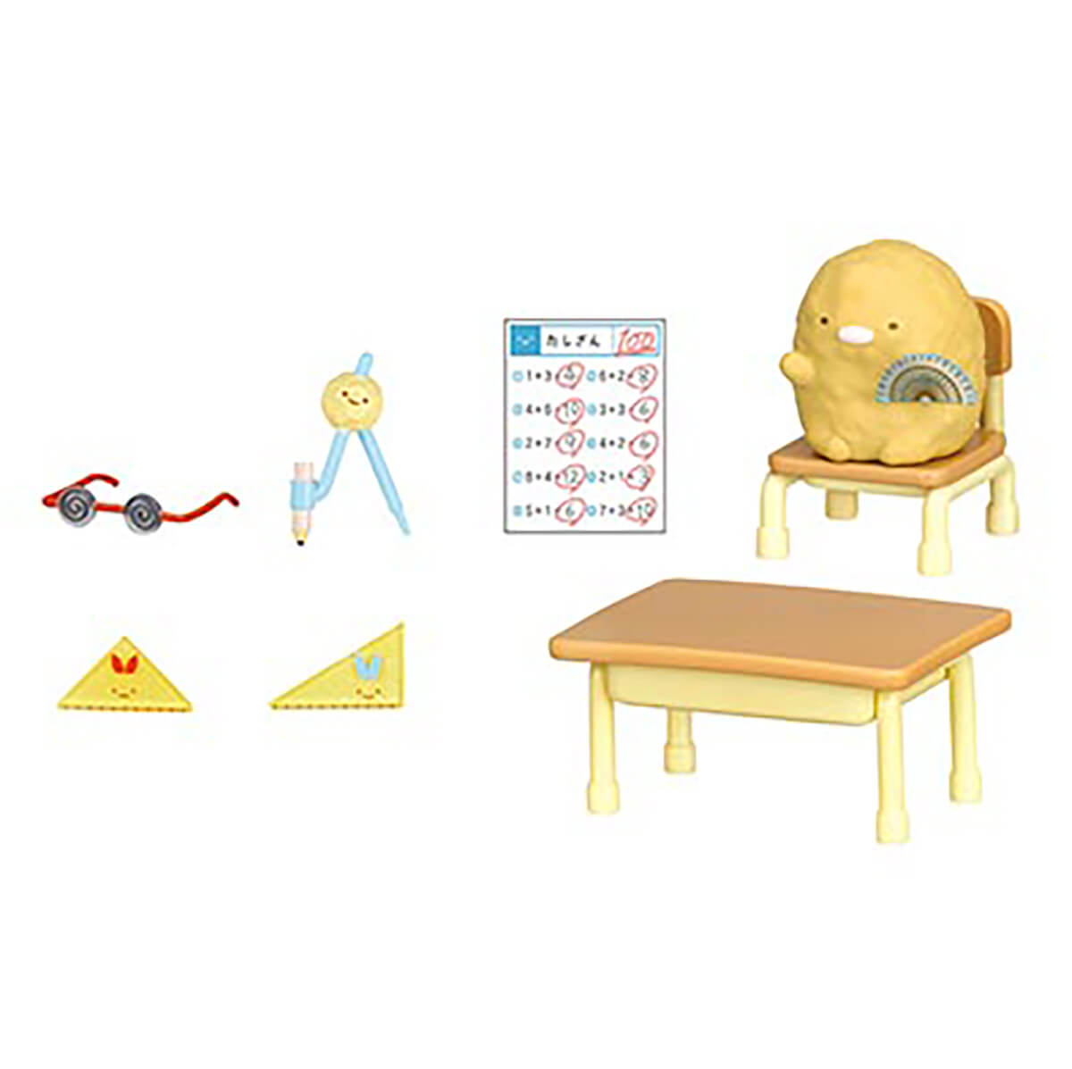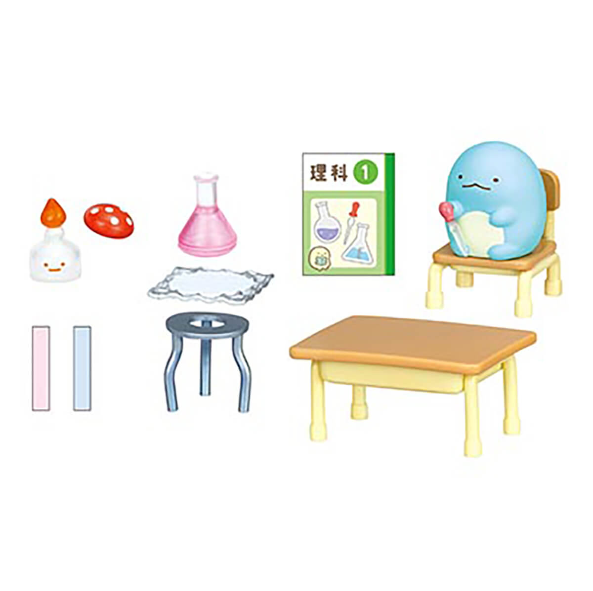 Eight Sumikko Gurashi-themed school scenes / classroom sets to collect: Homeroom, Art, Math, Music, Lunchtime, Science, Calligraphy and Cleaning.