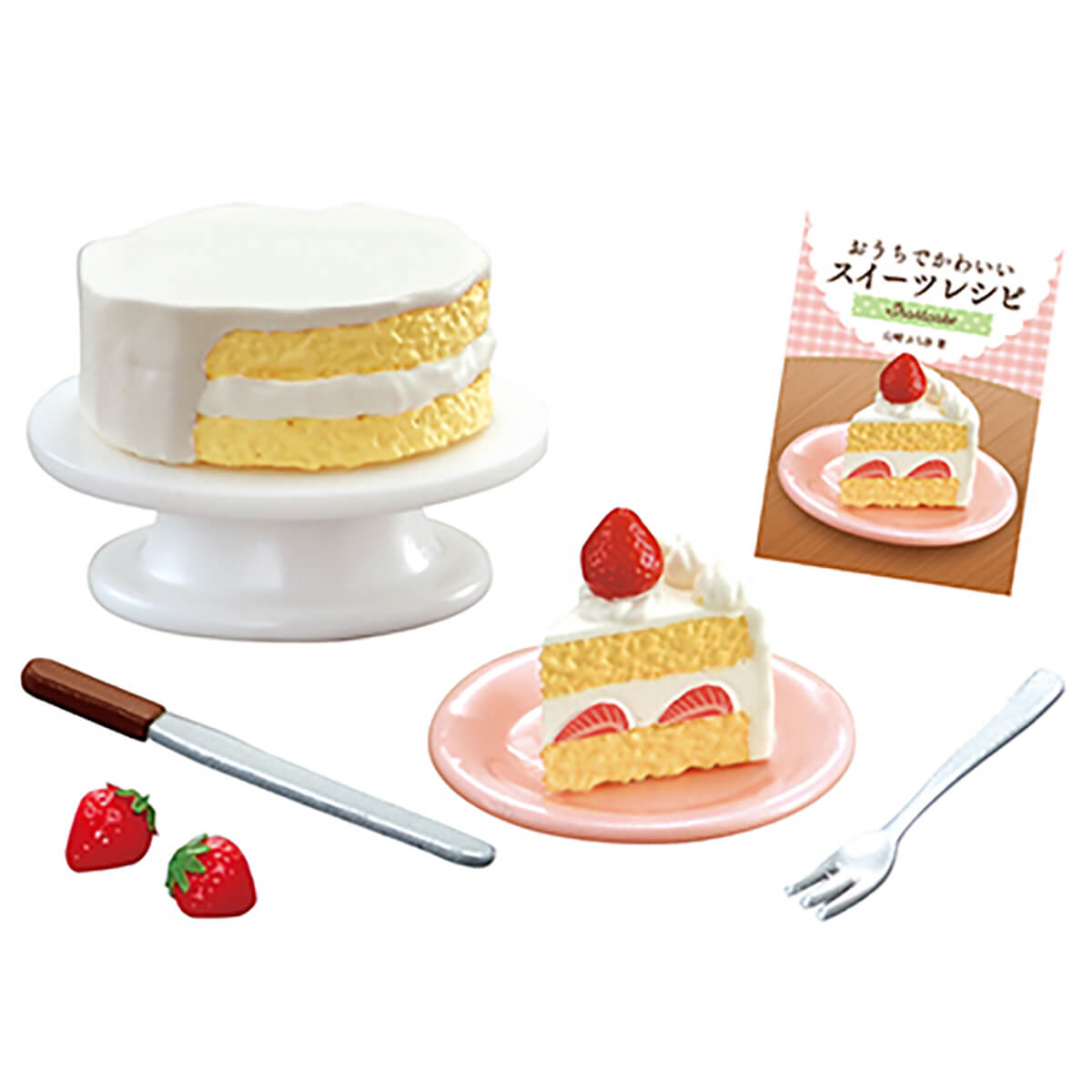 Sweets Recipes Home Baking Blind Box by Re-Ment Japan. The Sweets Recipes Home Baking series from Rement features miniature baking items and miniature food all with a baking theme to create your own home baking diorama. Collect all eight for the complete home baking scene, with miniature baking tins, whisks, ingredients and finished desserts. The miniatures are super detailed: there is a miniature electric whisk, cracked eggs and piping bag and even mini strawberries on the shortcake.