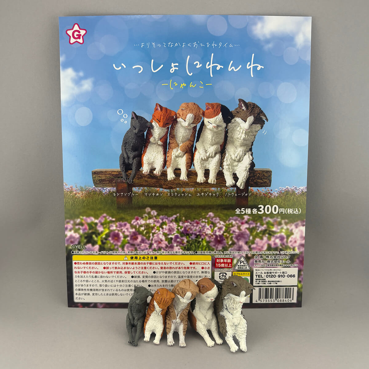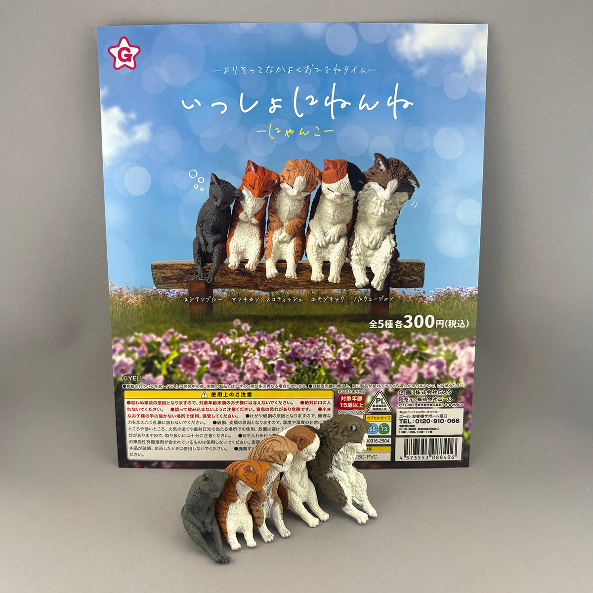 Together Sleeping Cats Gachapon Capsule Collectible by Yell Japan. Highly collectible and authentic Japanese gachapon capsule containing one of five adorable sitting figures with their head leaning on their shoulder and their eyes closed. Add some naptime calm to your bedside table, workspace or bookshelf with these sweet sleepy kitties. Collect all five and they can cuddle up together all in a row.