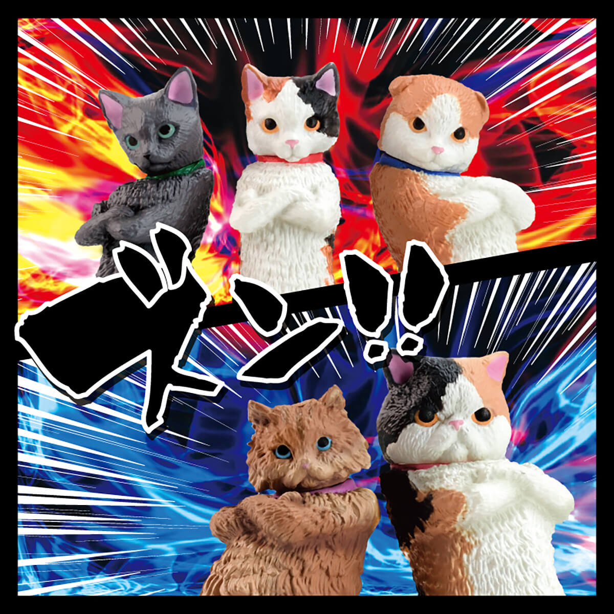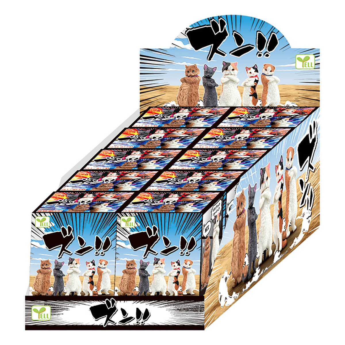 Zun!! Cat Blind Box by Yell Japan. The Boom!! Cat Zun!! Nyanko series from Yell World features cats with attitude! The cats have their arms folded and stand like in a scene from a manga! Add a background and text to instantly create a showdown scene. Their heads can be adjusted from side to side so they can face in different directions. Add your favourite Zun!! kitty to your workspace or bookshelf. Collect all five designs and display them in a group for maximum impact.