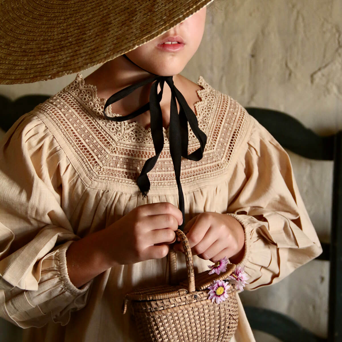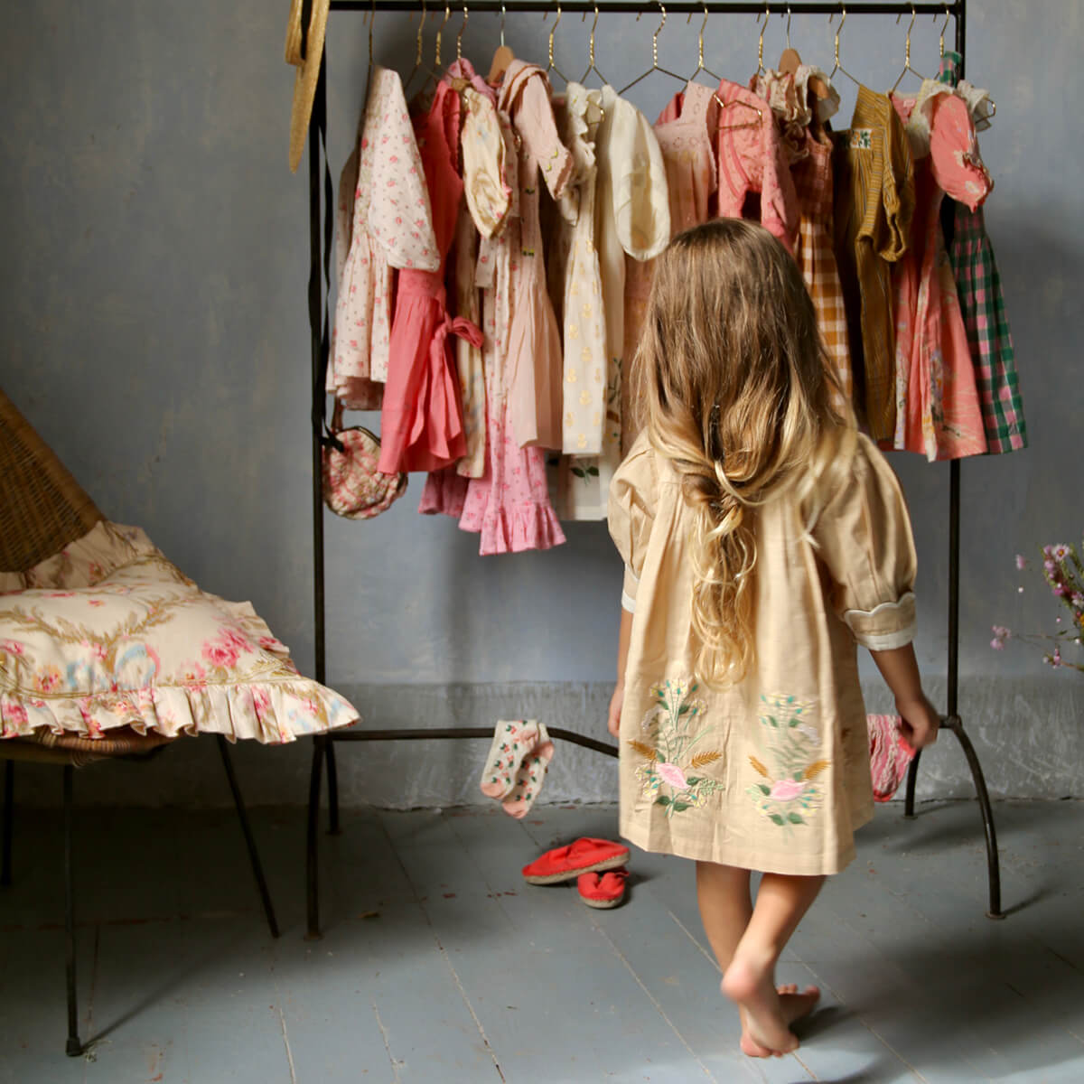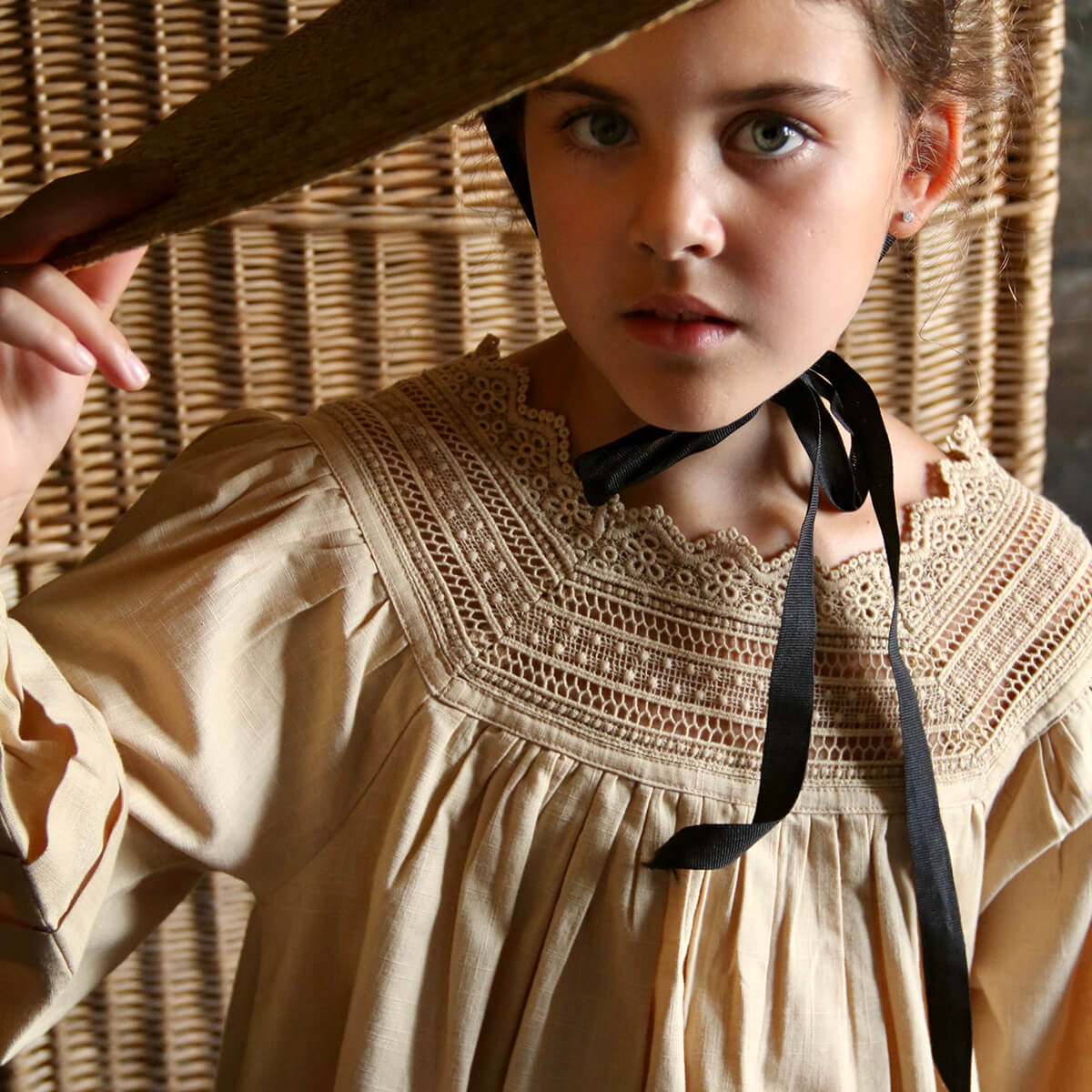Embroidered Garden Dress in Sand by Bonjour - Last Ones In Stock - 8-10 Years