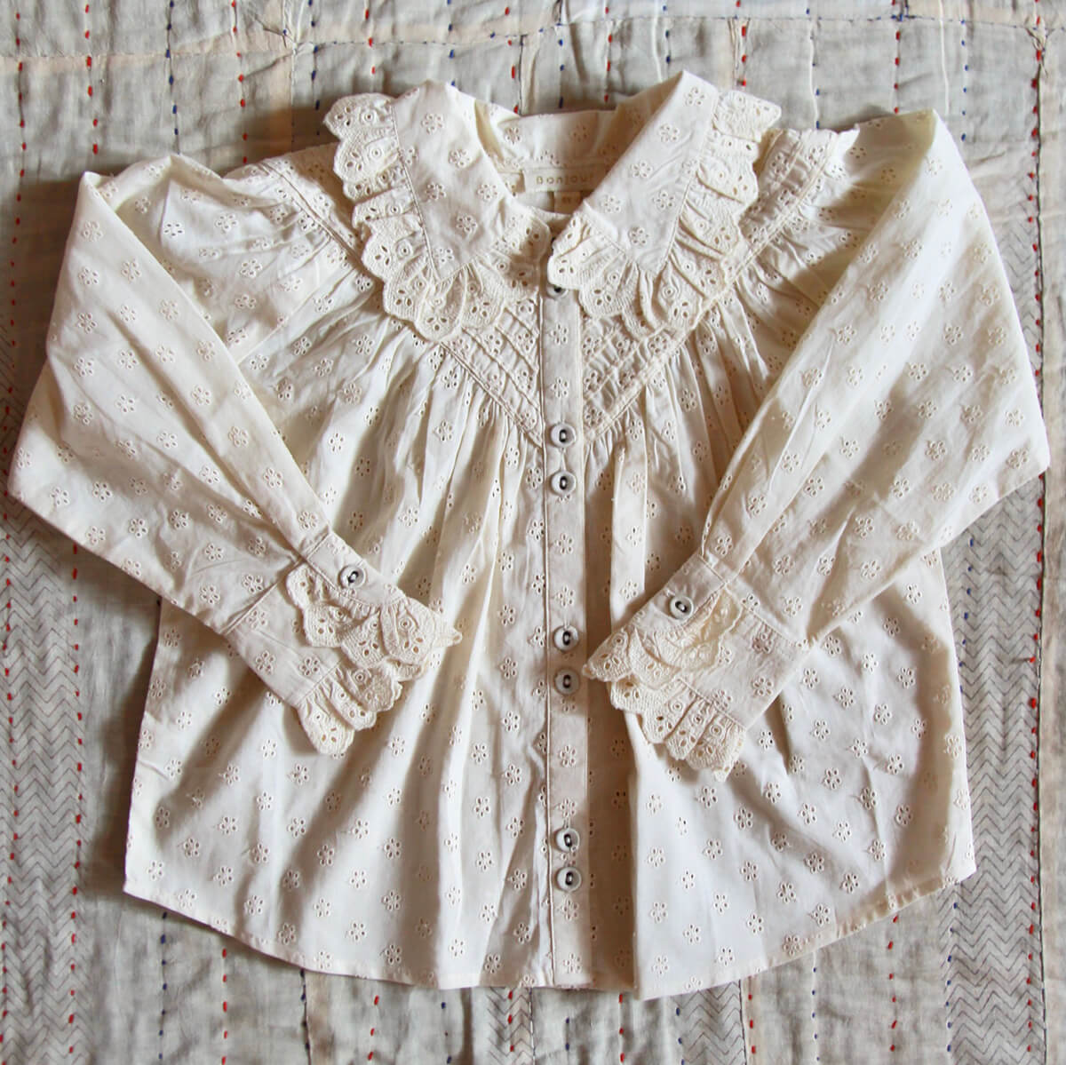 Iris Blouse in Natural Broderie Anglaise by Bonjour