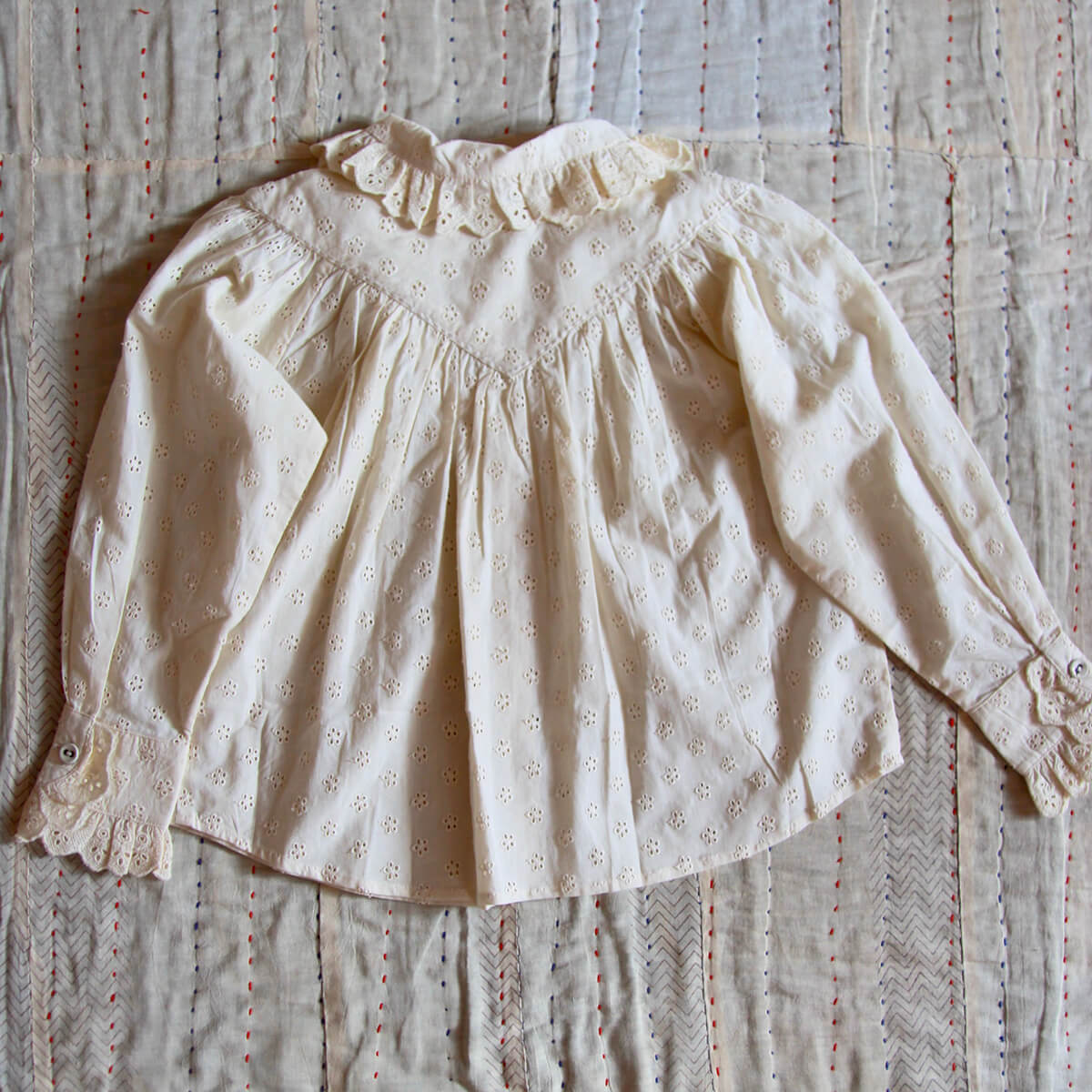 Iris Blouse by Bonjour. A broderie anglaise blouse with frill collar and smocked cuffs.