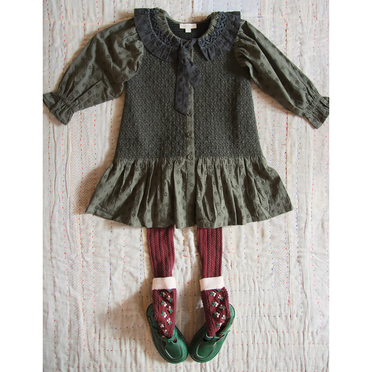Tie Tunique in Khaki Green Broderie Anglaise by Bonjour - Last Ones In Stock - 6-8 Years