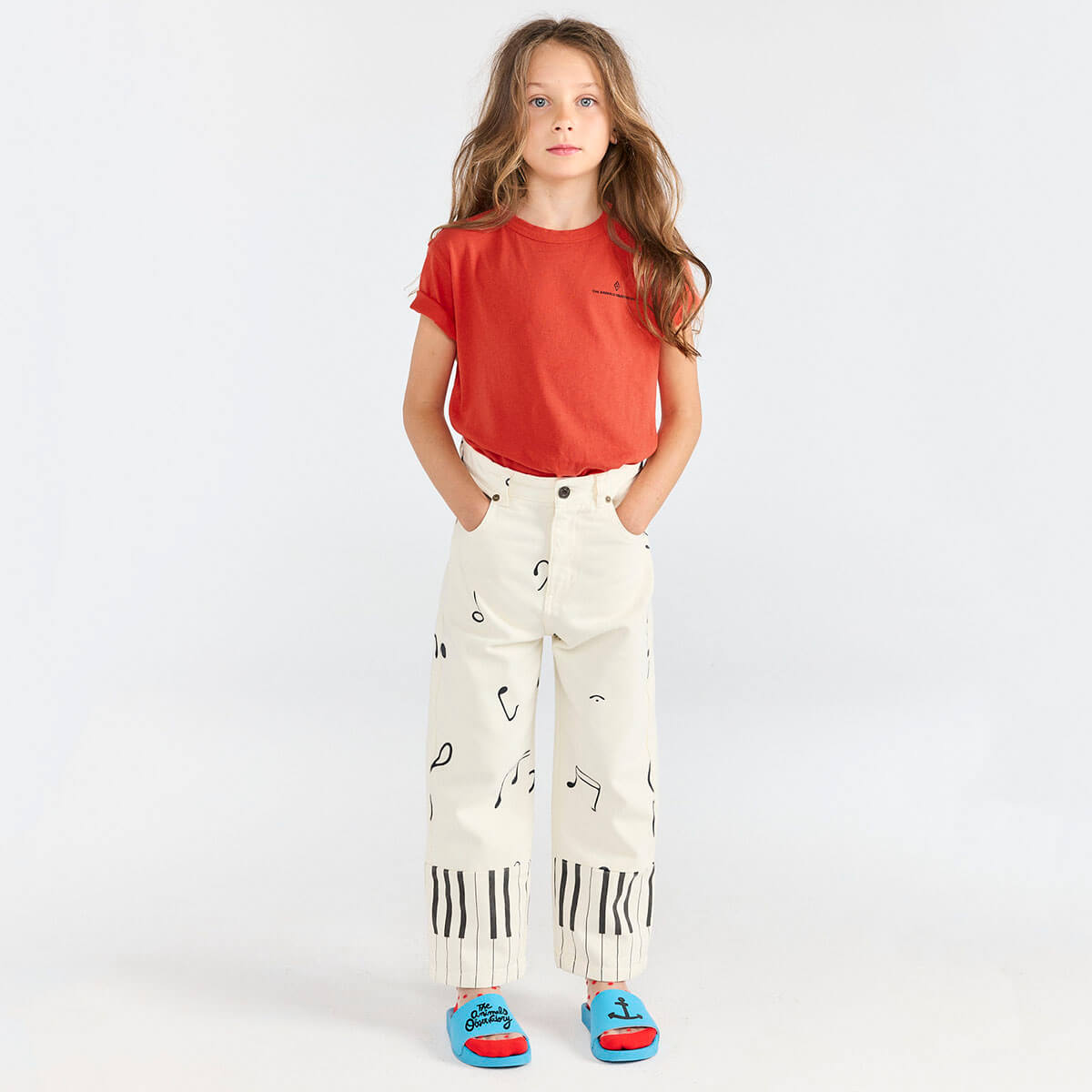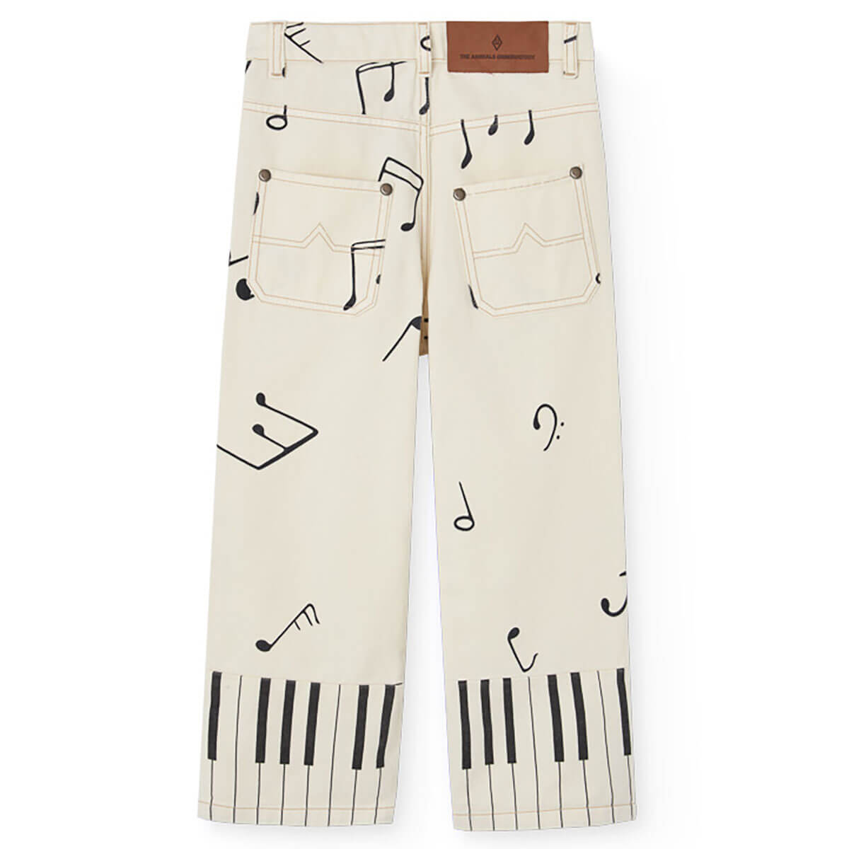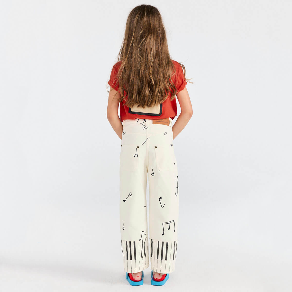 Ant Kid Pants by The Animals Observatory. Covered in whimsical notes and finished with piano-inspired hems, these trousers celebrate music and movement. A bold choice for little dreamers.