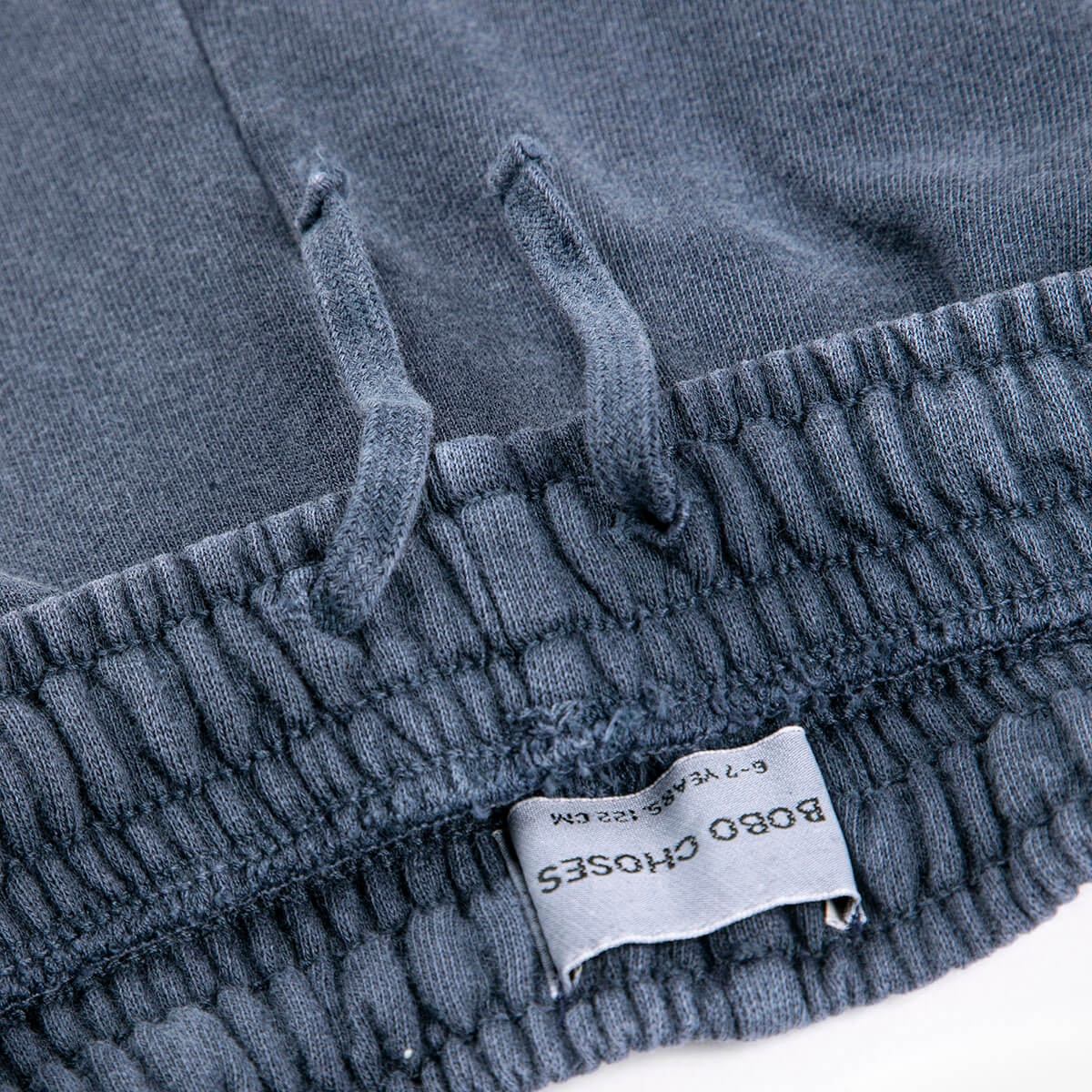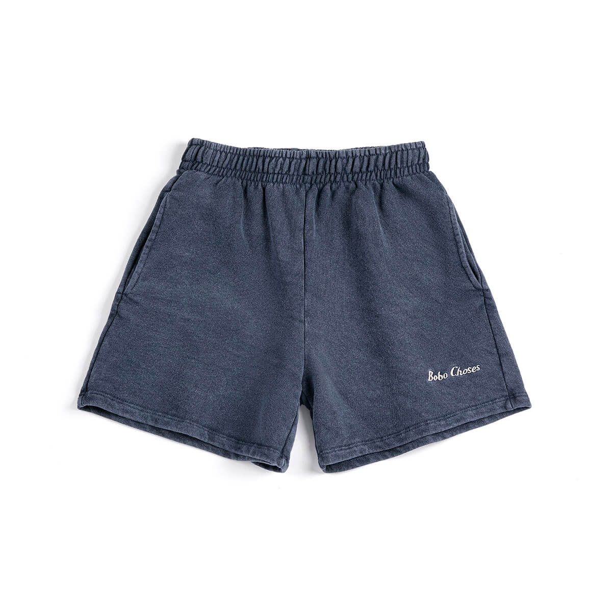 Bobo Choses Bermuda Shorts by Bobo Choses. Navy blue short designed with an elasticated waistband, embroidery, adjustable drawstring, over knee length, a patch pocket, seam pockets and a relaxed fit.
