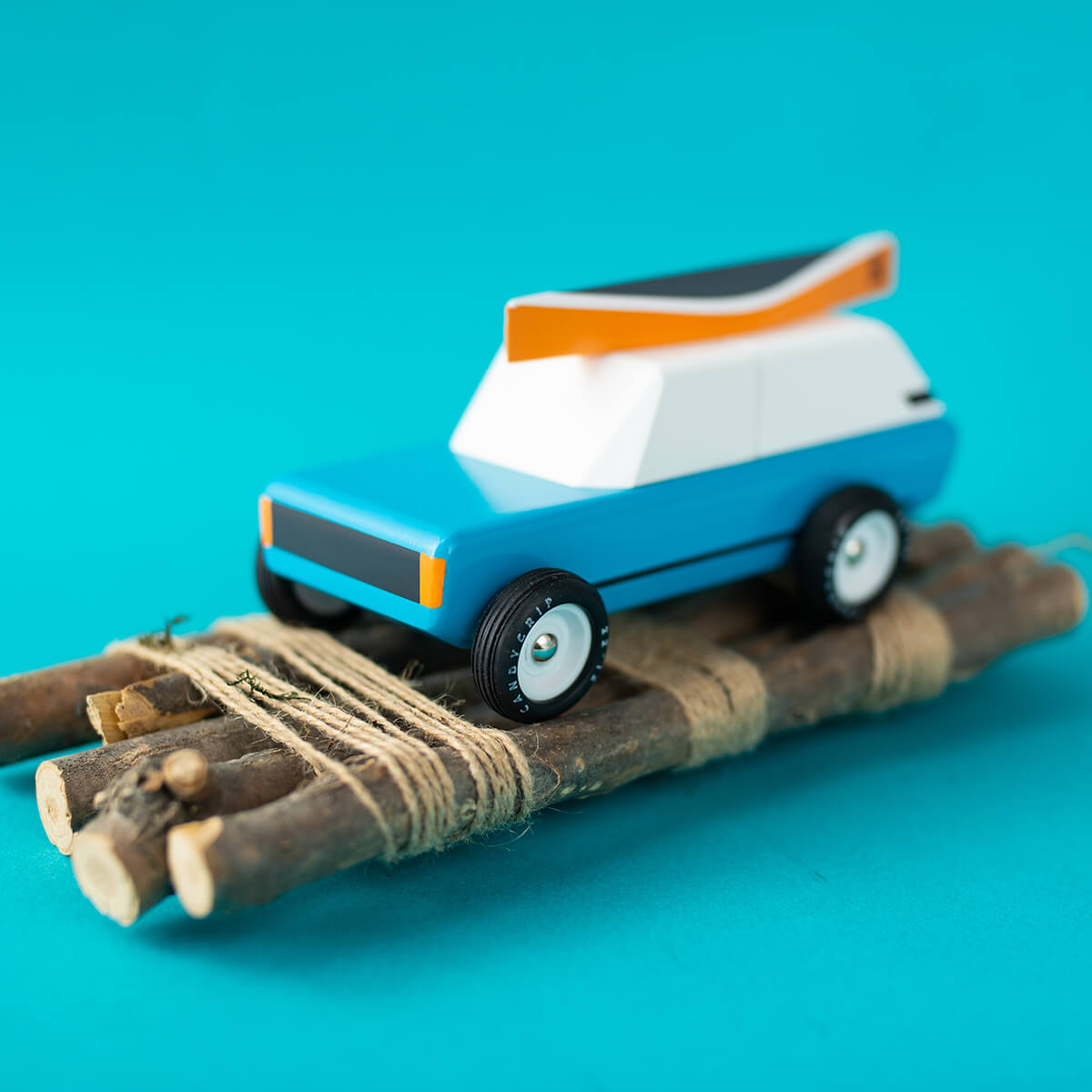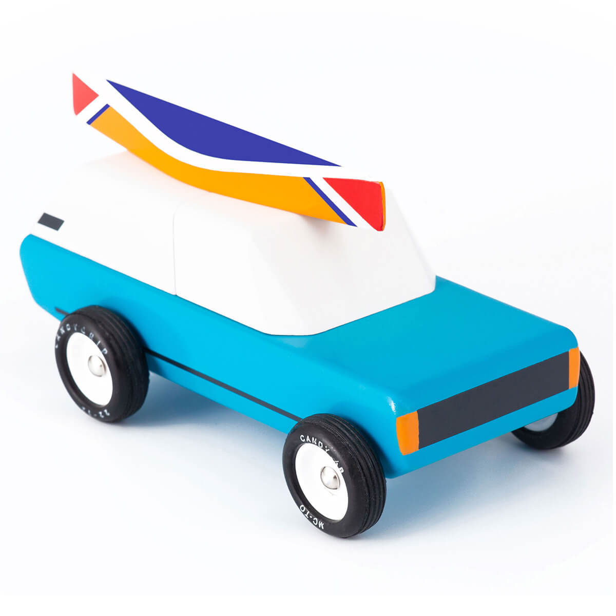 Cotswold Royal By Candylab Toys. In a quest to overcome the rush for your afternoon tea - or tee? Must take the unpaved shortcut? Does your antiquing passion require copious amounts of comfortable travel? The Cotswold has you covered. The fancy toy vehicle for all connoisseurs. Comes with a magnetic surfboard and magnetic tow hook.