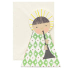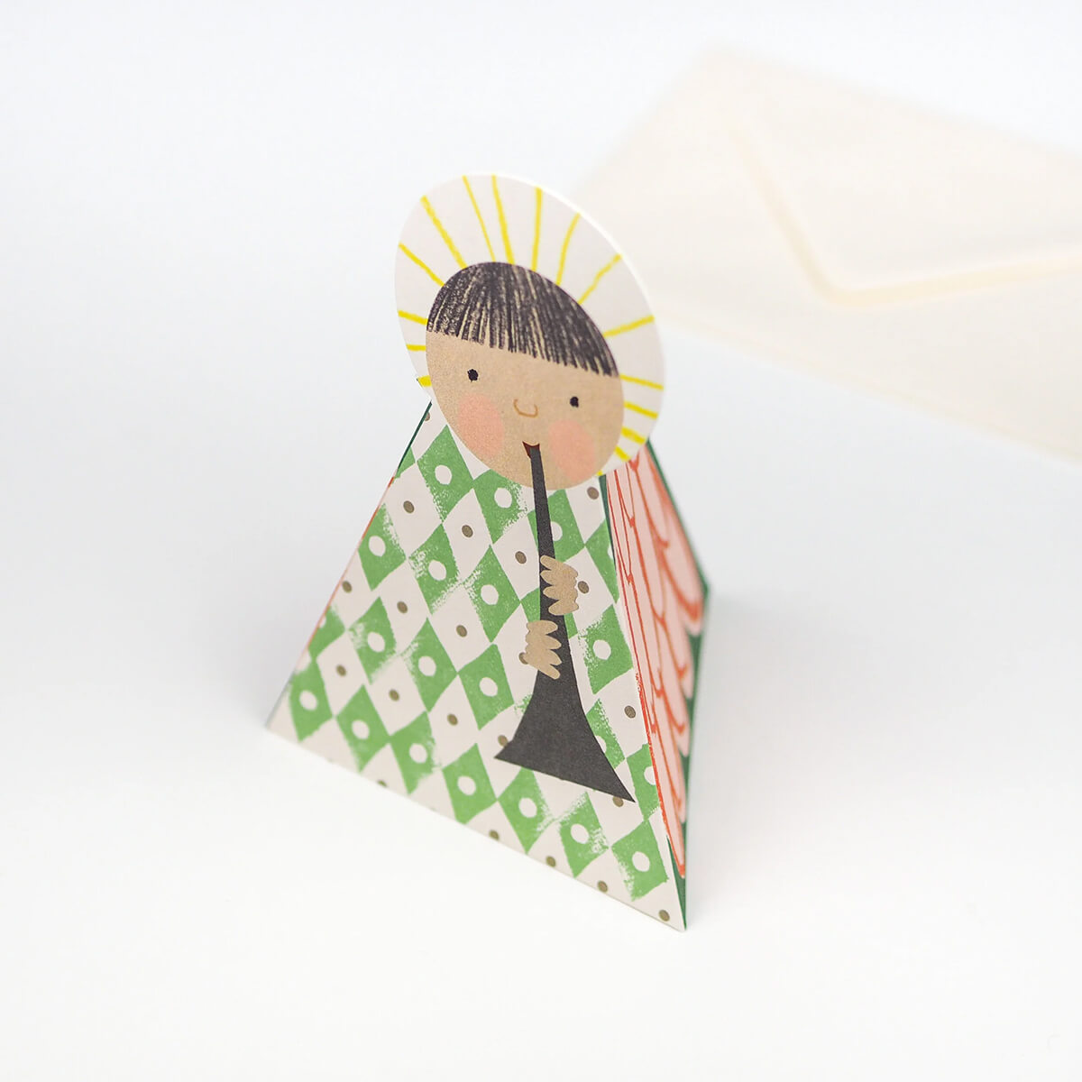 Green Angel Fold-Out Christmas Greetings Card by Hadley. A sweet choir green angel card with fold-out wings so it stands beautifully on display.