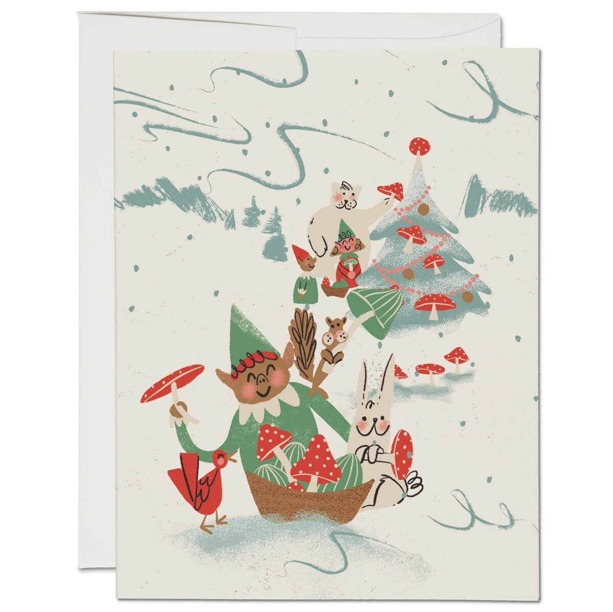 Holiday Critters Christmas greetings card by Red Cap Cards. Features an illustration by Dylan Mierzwinski. Printed in the USA on heavyweight card stock.