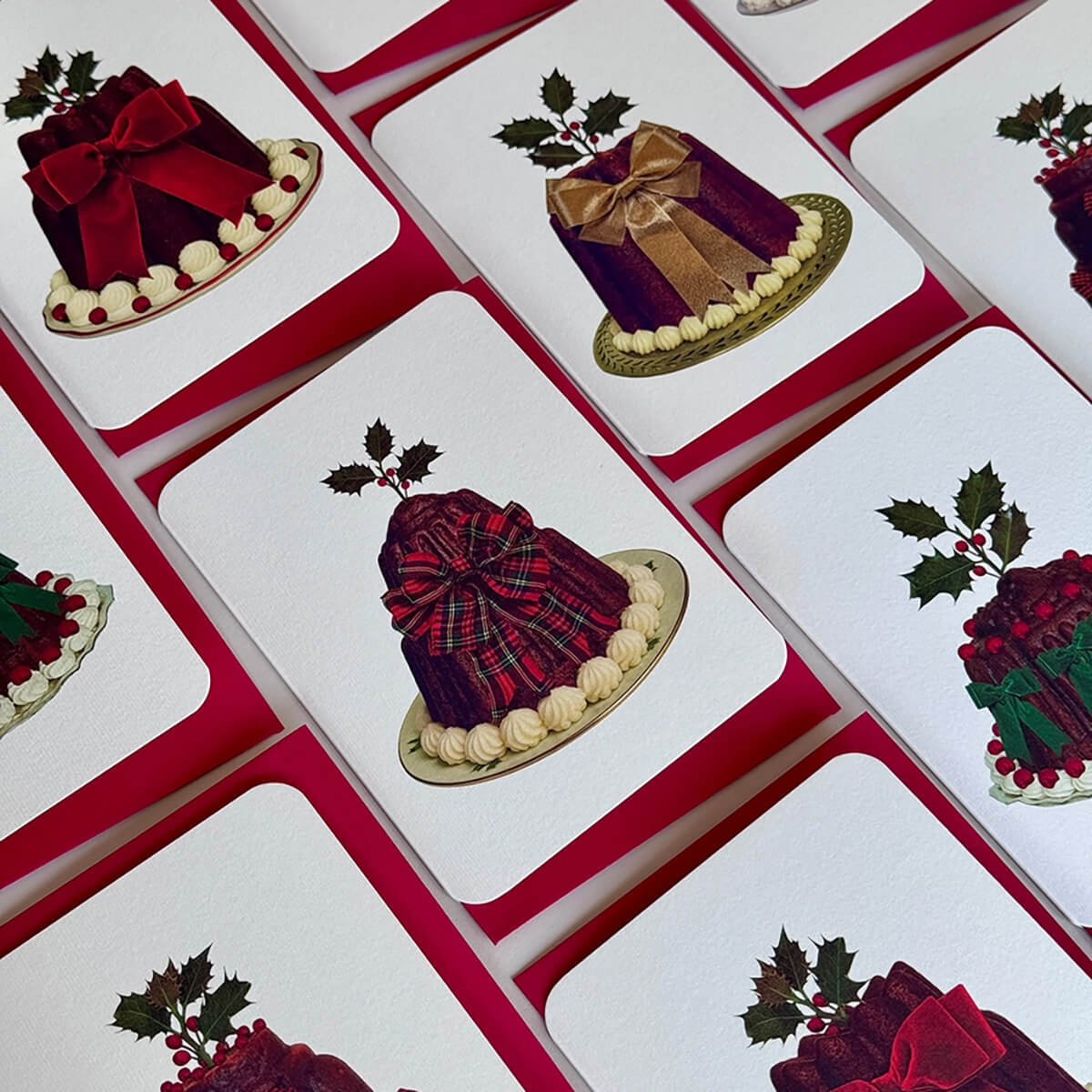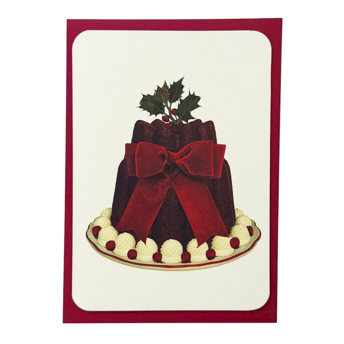 Plum Pudding Set Of 6 Christmas Greetings Cards by Canonbury Press. Inspired by decorative Victorian plum puddings, this festive card set features richly adorned Christmas puddings styled with seasonal greenery and photographed by Alexandra Simms. Printed in England. A nostalgic and joyful choice for seasonal greetings or to accompany a thoughtfully wrapped gift.