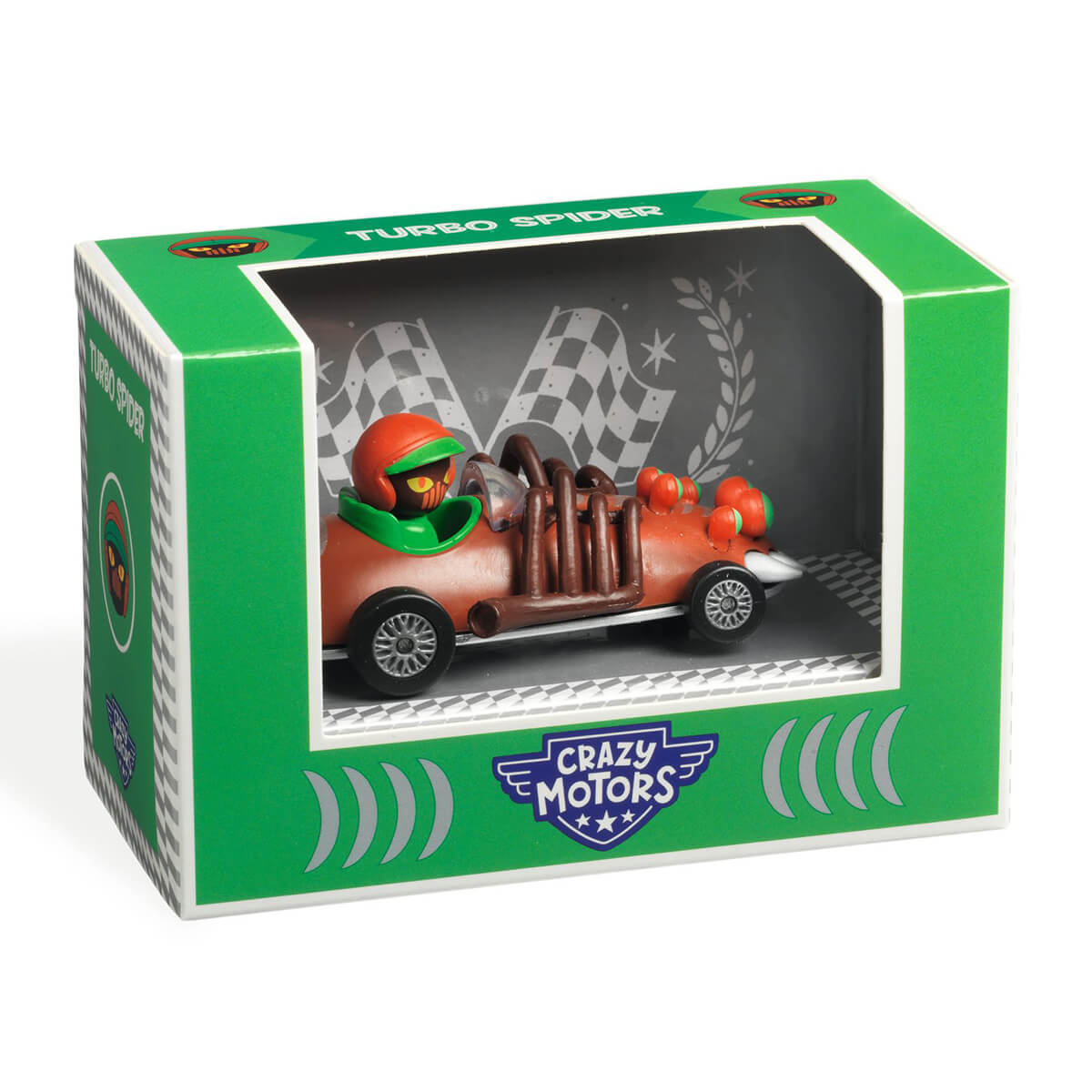 Crazy Motors Turbo Spider Toy Car by Djeco. A Schumacher from a new world, a car with ultra-powerful turbos, victory is assured!