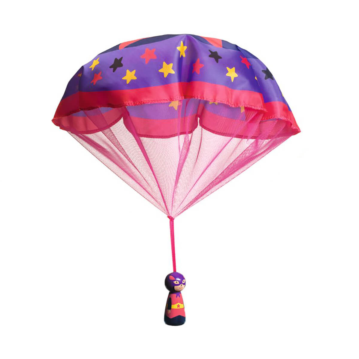 Parachutists Flying Heroes by Djeco. The Flying Heroes are little wooden hand-throwing parachutist, keep them in the air as long as possible! Super Flash, Super Cat and Super Chouette are each sold separately in lovely boxes. A modern take on a classic toy!
