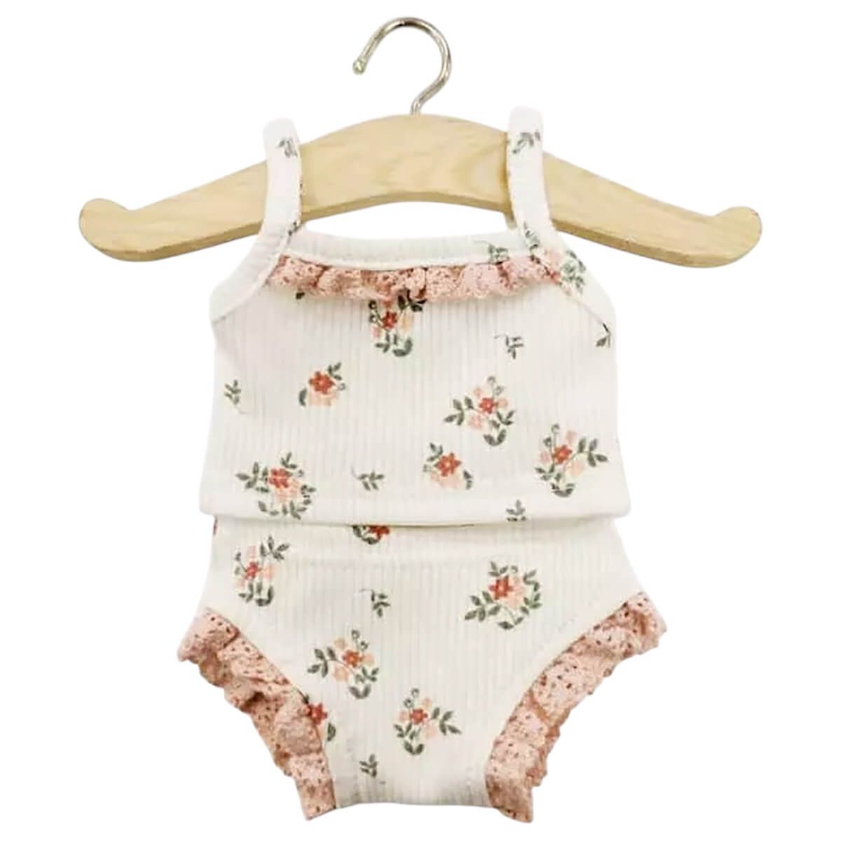 Lace Trim Ribbed Girl's Underwear Set (34cm and 37cm Doll) in Pink Flowers by Minikane