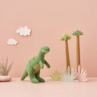 Prehistoric Animals Holdie Folk set by Olli Ella. Come and explore the prehistoric world, where you will meet its resident Dinosaurs Pterodactyl, T-Rex and Ankylosaurus. Handmade from a soft wool blend with embroidered features, these three dino friends are the perfect size for small hands and make wonderful prompts for hours of imaginative play. Discover Pterodactyl, the flying dino known for having the fastest wings in all the land! This big- hearted friend can often be found soaring high above the trees and volcanoes, seeking out fun and mischief too! Say hello to loveable Ankylosaurus, who can sometimes be shy but always comes running when a buddy roams by. Ankylosaurus is a massive fan of sloshing about in the calm rivers and streams of HoldieTM Prehistoric world and likes to spend the day hunting for the greenest leaves to munch! The king of the HoldieTM Prehistoric is our BIG friend T-Rex, who can be spotted busily roaring and roaming day after day. There’s no need to be scared: this T-Rex is a gentle giant who loves to explore and meet new buddies to play hide and seek with. Let the prehistoric adventure begin by adding HoldieTM Extinct friends into the mix for fun-filled play all day. HoldieTM Prehistoric Set includes 3 x Dinosaurs; Dinos are not sold separately.