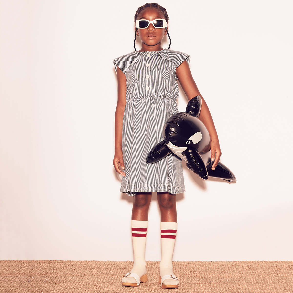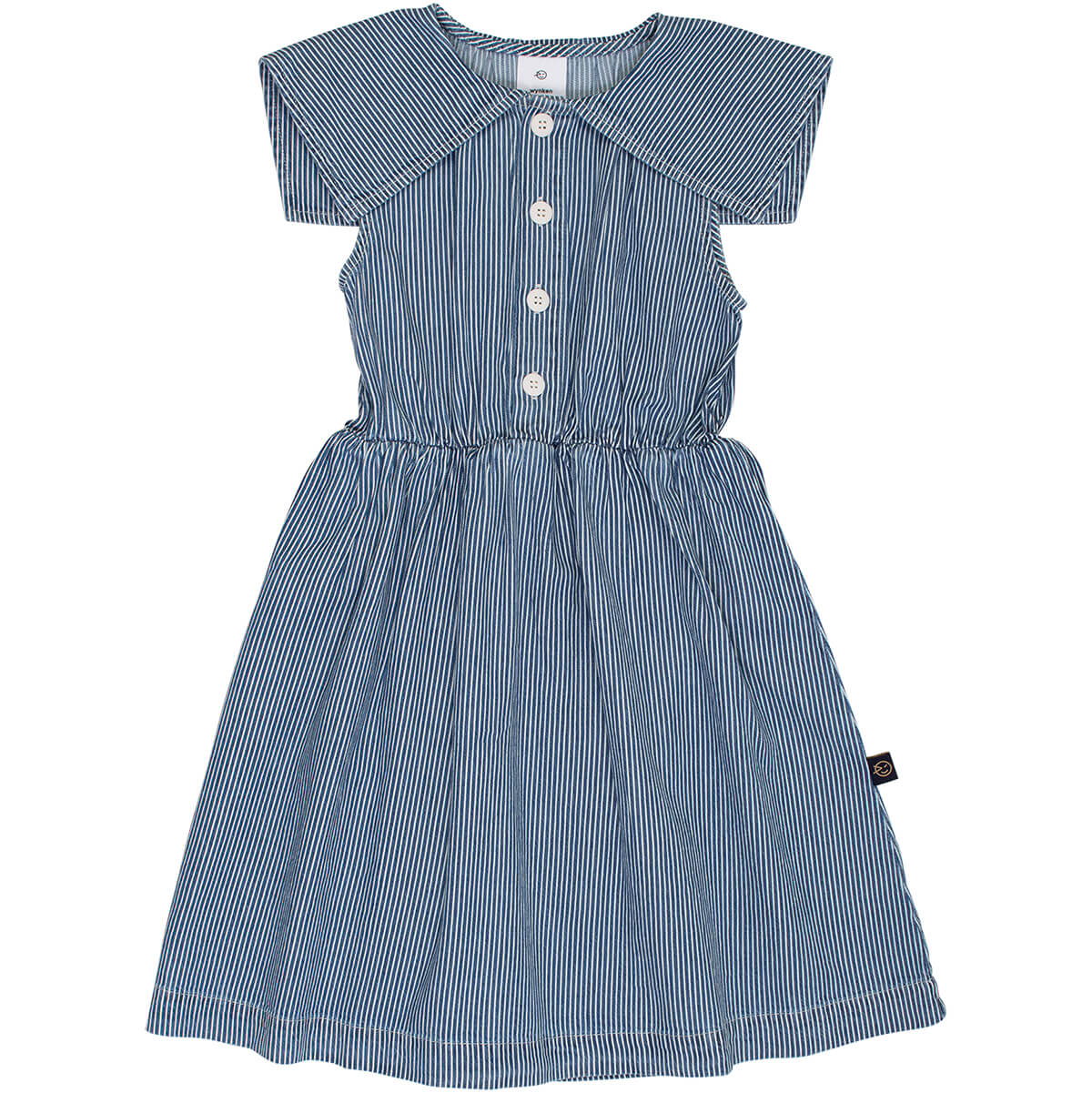 Denim Sail Collar Sundress in Multi Stripe Hickory by Wynken