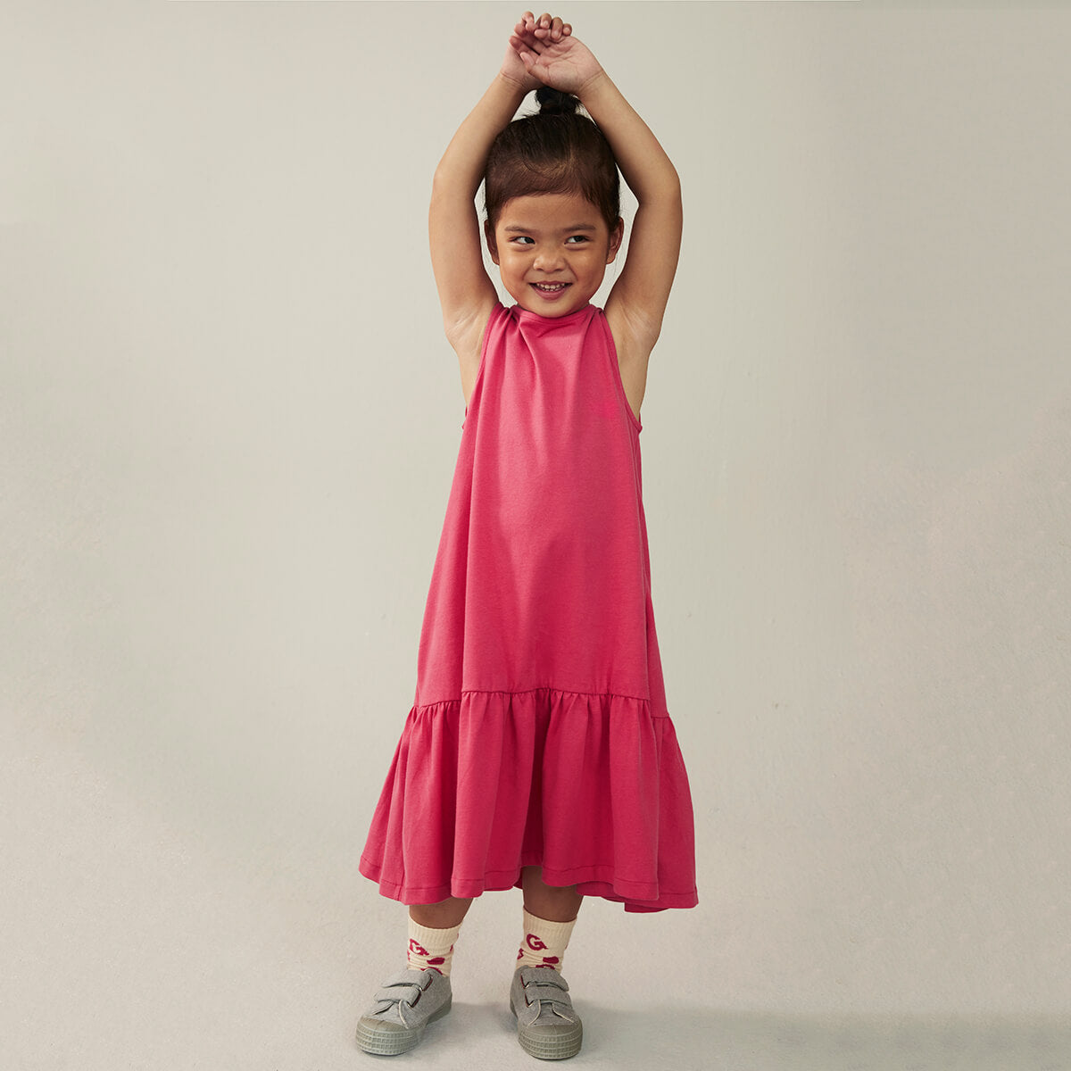 Frill Dress by Gray Label. A-line dress crafted from soft organic cotton jersey with a frill hem detail. Designed in a sleeveless, relaxed fit that falls below the knees. Finished with Gray Label embroidered logo on the back, below the neckline.