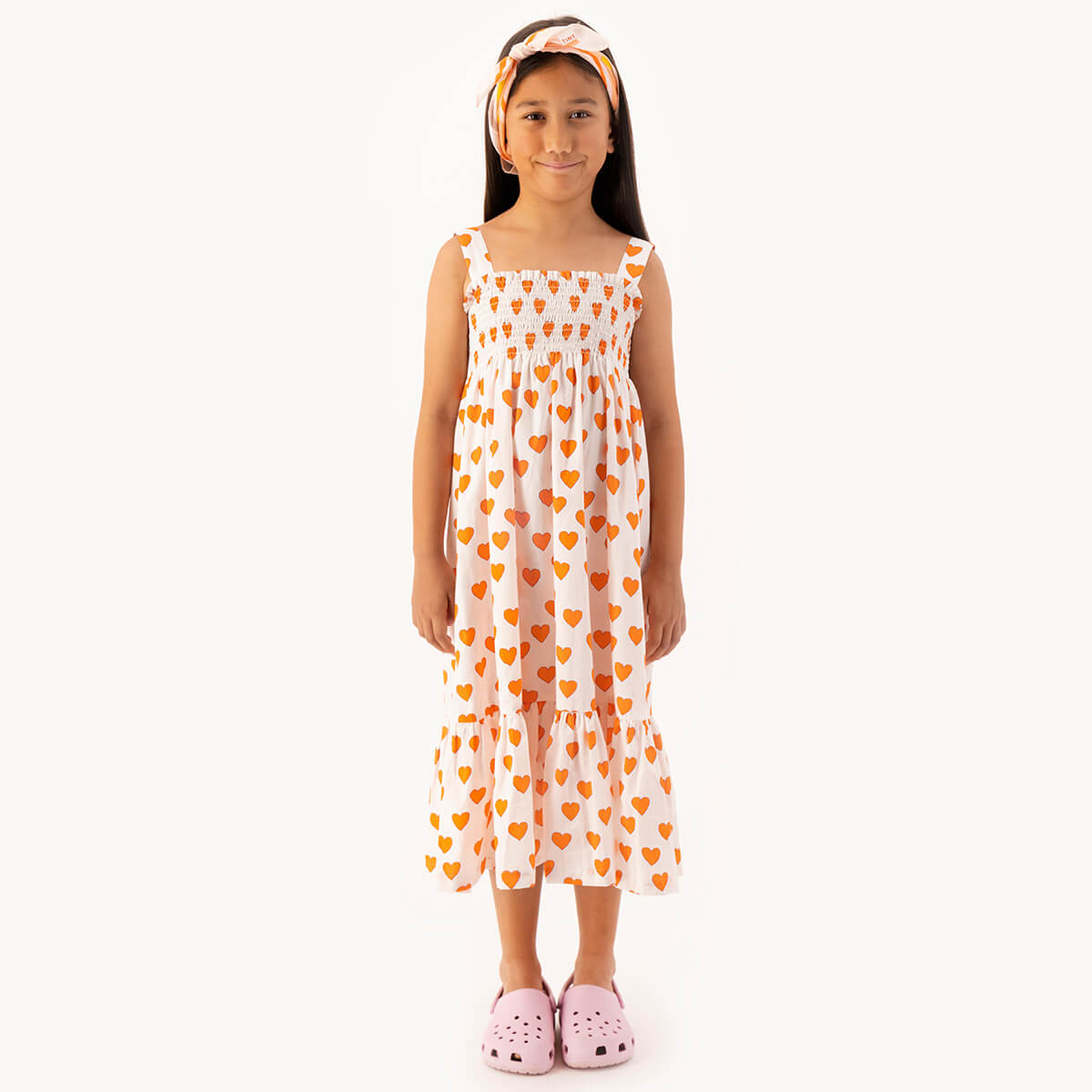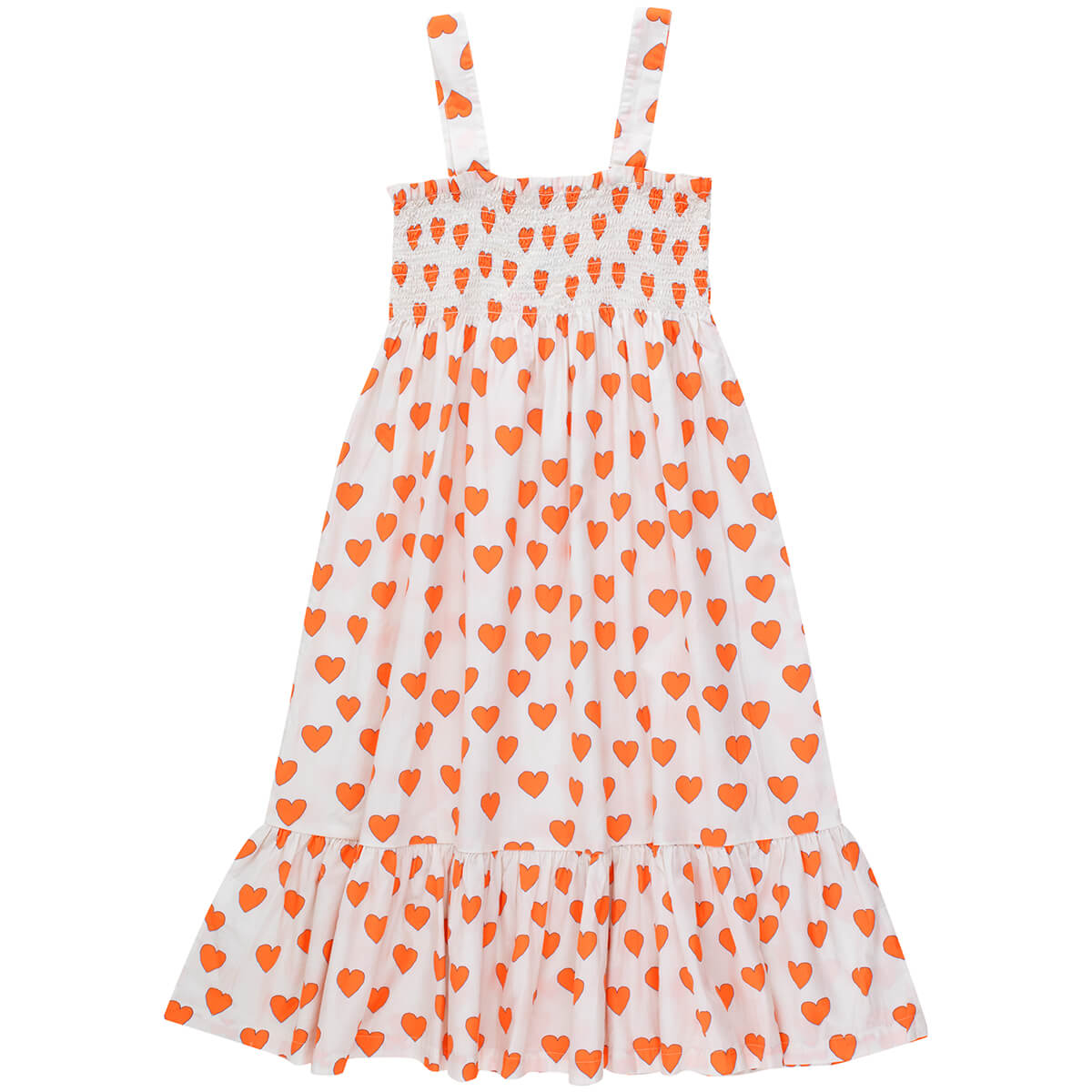 Hearts Dress by Tinycottons. TINY's Hearts dress in elegant off-white is a versatile and charming addition to your child's wardrobe. Crafted from soft cotton poplin with a stretchy, elasticated top and wide straps, it offers both comfort and durability. The off-white color serves as a canvas for the adorable heart print, making it perfect for creating playful and stylish outfits for any occasion. This dress adds a touch of sweetness to your little one's look.
