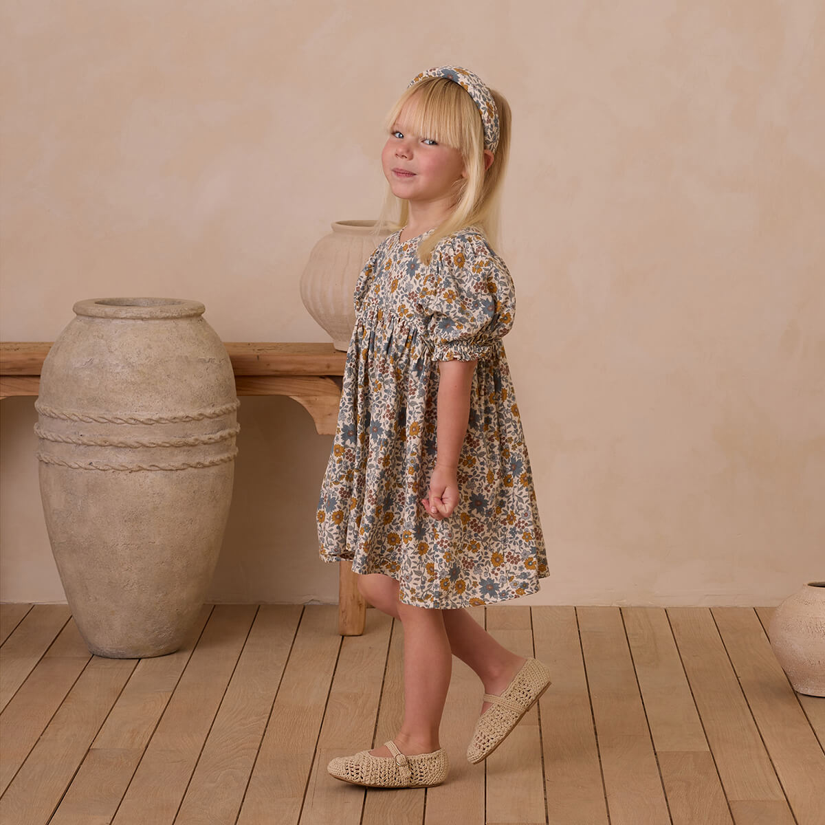 Jolene dress by Rylee & Cru. This pretty v-neck dress features puff sleeves and a babydoll inspired silhouette with a curved waistline.