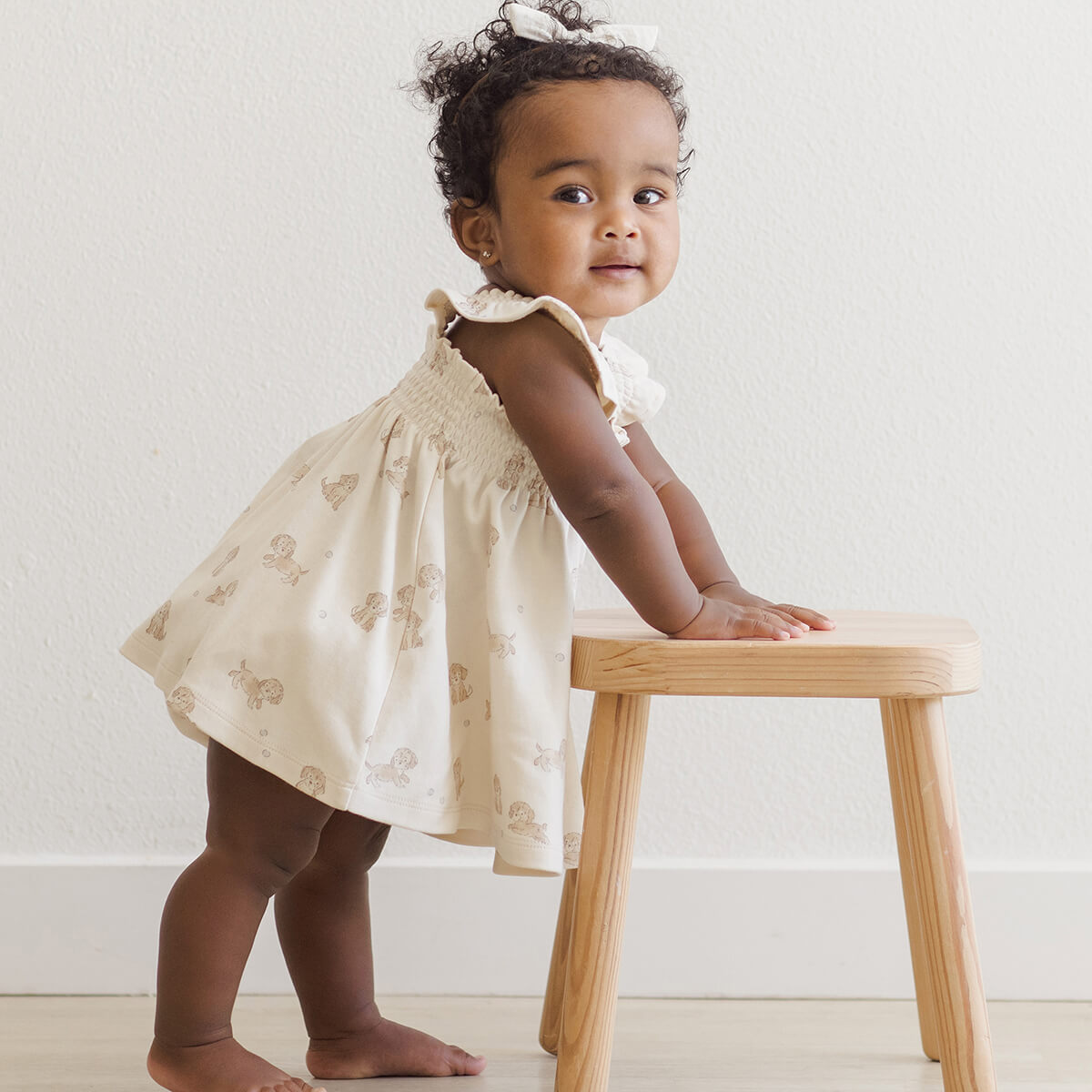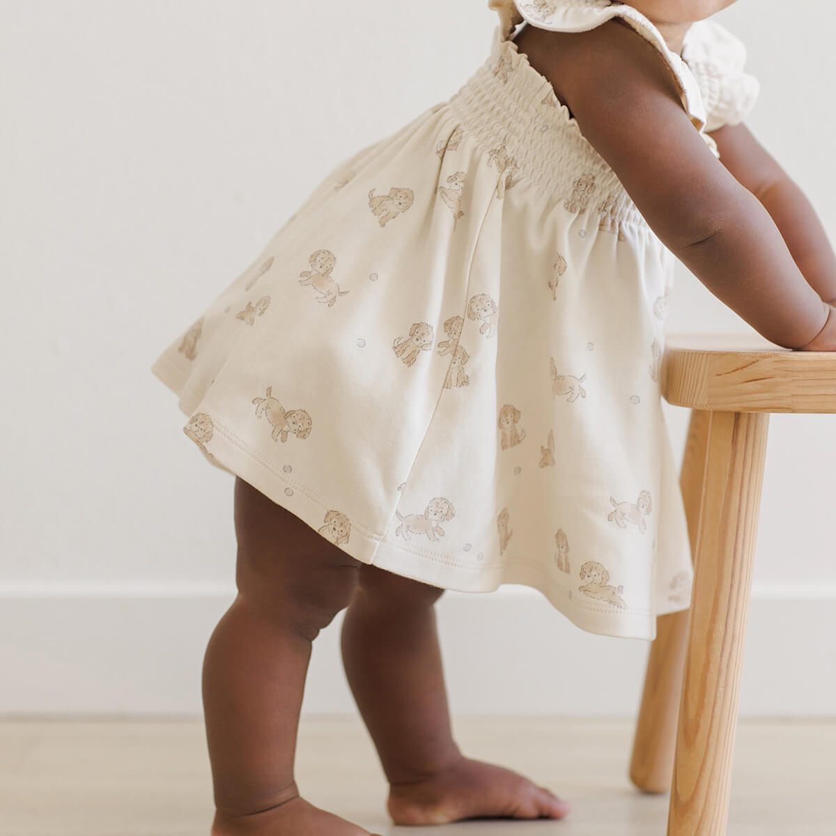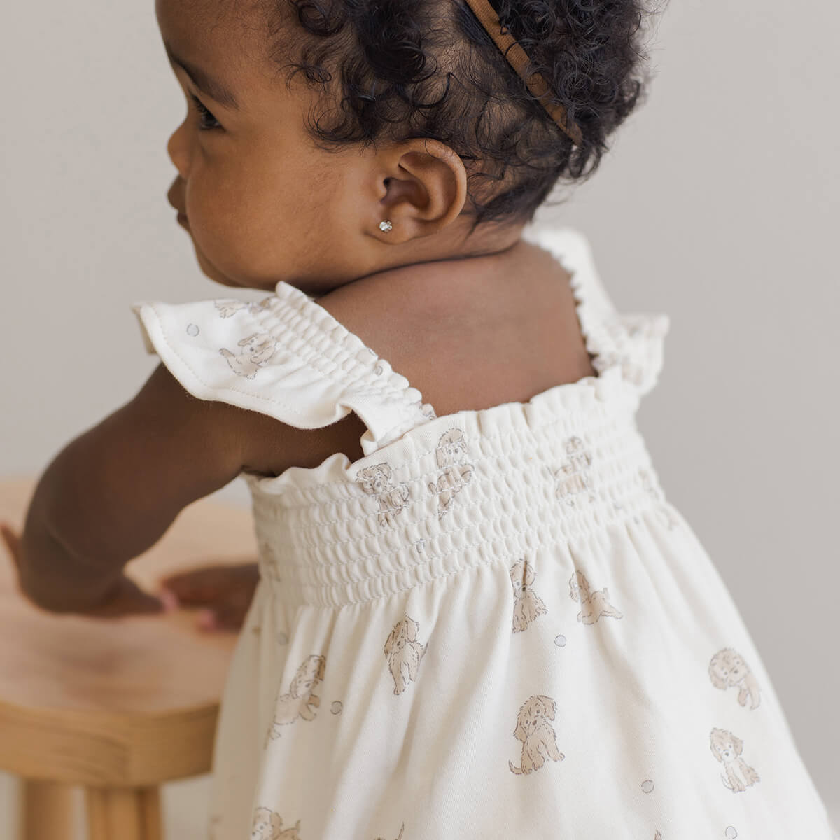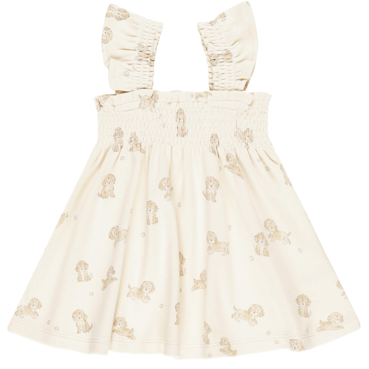 Smocked Jersey Dress in Puppies by Quincy Mae