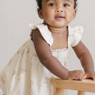 Smocked Jersey Dress by Quincy Mae. A sleeveless jersey smock dress with sweet shoulder ruffle details.