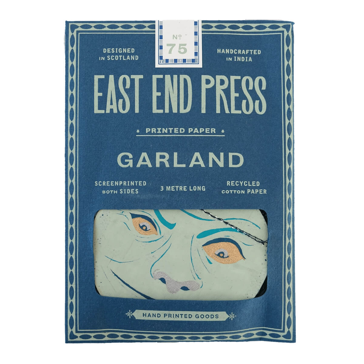 Screen printed by hand. Every garland is hand printed so may vary slightly from the photograph, this just adds to the charm!