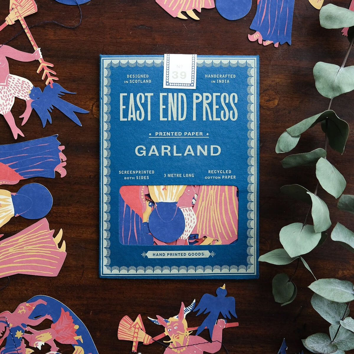 Garland made from recycled paper sewn along strong cotton thread. Packaged in plastic-free biodegradable packaging.