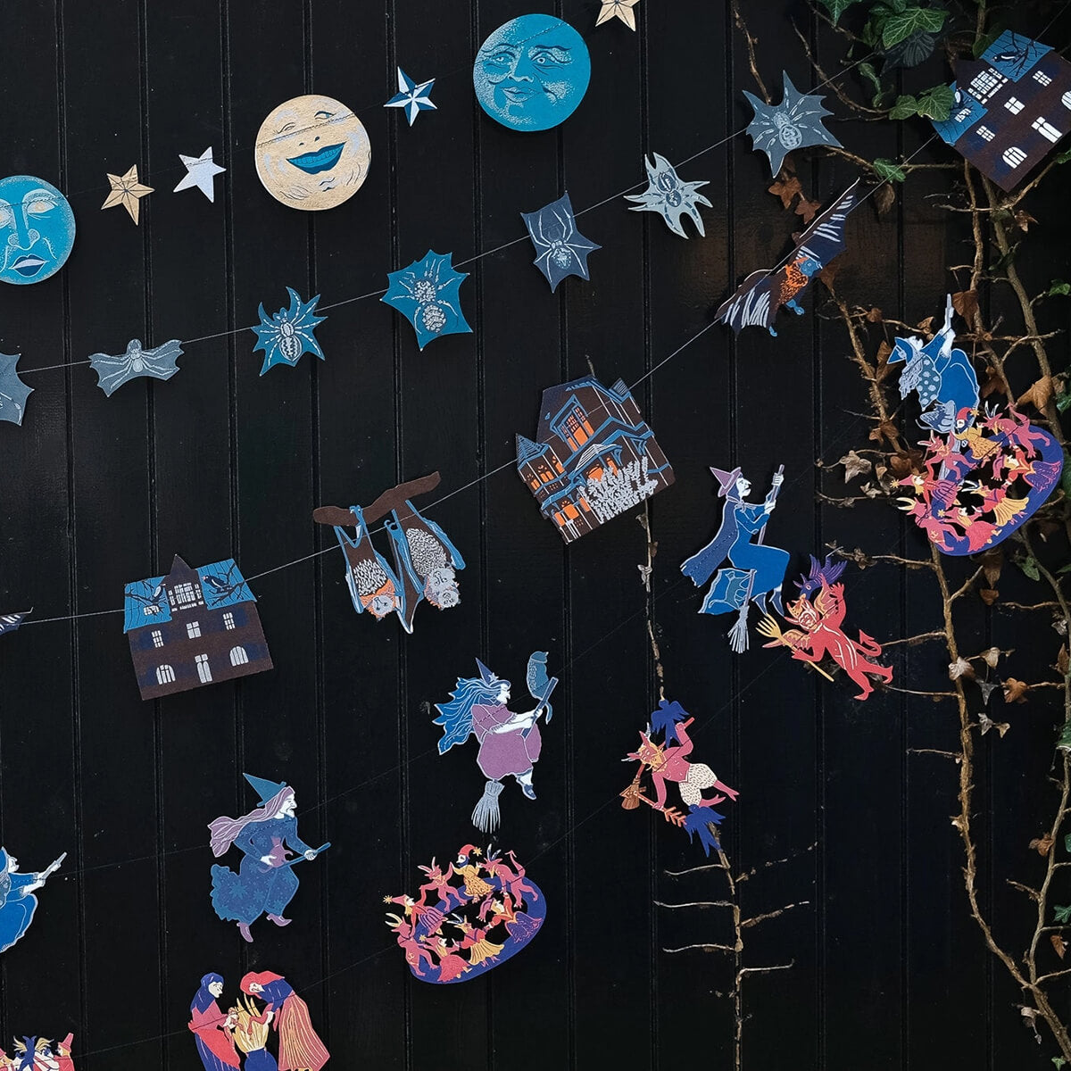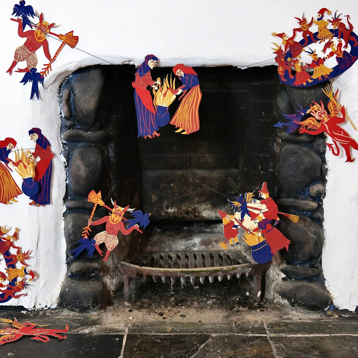 Medieval Paper Garland by East End Press. Inspired by medieval woodcuts of witches burned at the stake, this garland pays homage to defiance and female power.