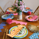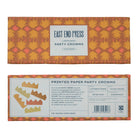Paper crowns by East End Press. These colourful party crowns are each screen printed by hand with a different pattern onto recycled paper. Each crown is slightly different, but all are shades of yellow. They are sturdy enough to be packed away and reused celebration after celebration. The crowns are large enough for adult heads, and perfect for adding some fun to your party!