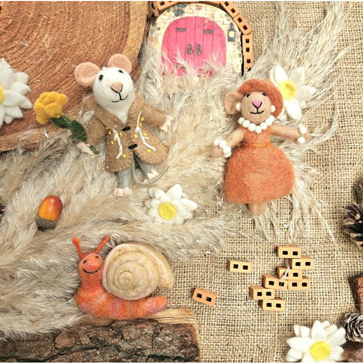 Sadie The Snail hanging decoration by Felt So Good. This pretty snail has an orange body and delicate cream shell. She has been hand needle-felted by skilled artisans in Nepal under Fairtrade working conditions. This lovely hand-felted decoration is perfect for hanging on your Easter tree, as part of an Easter Egg hunt or for decorating the home in Spring.