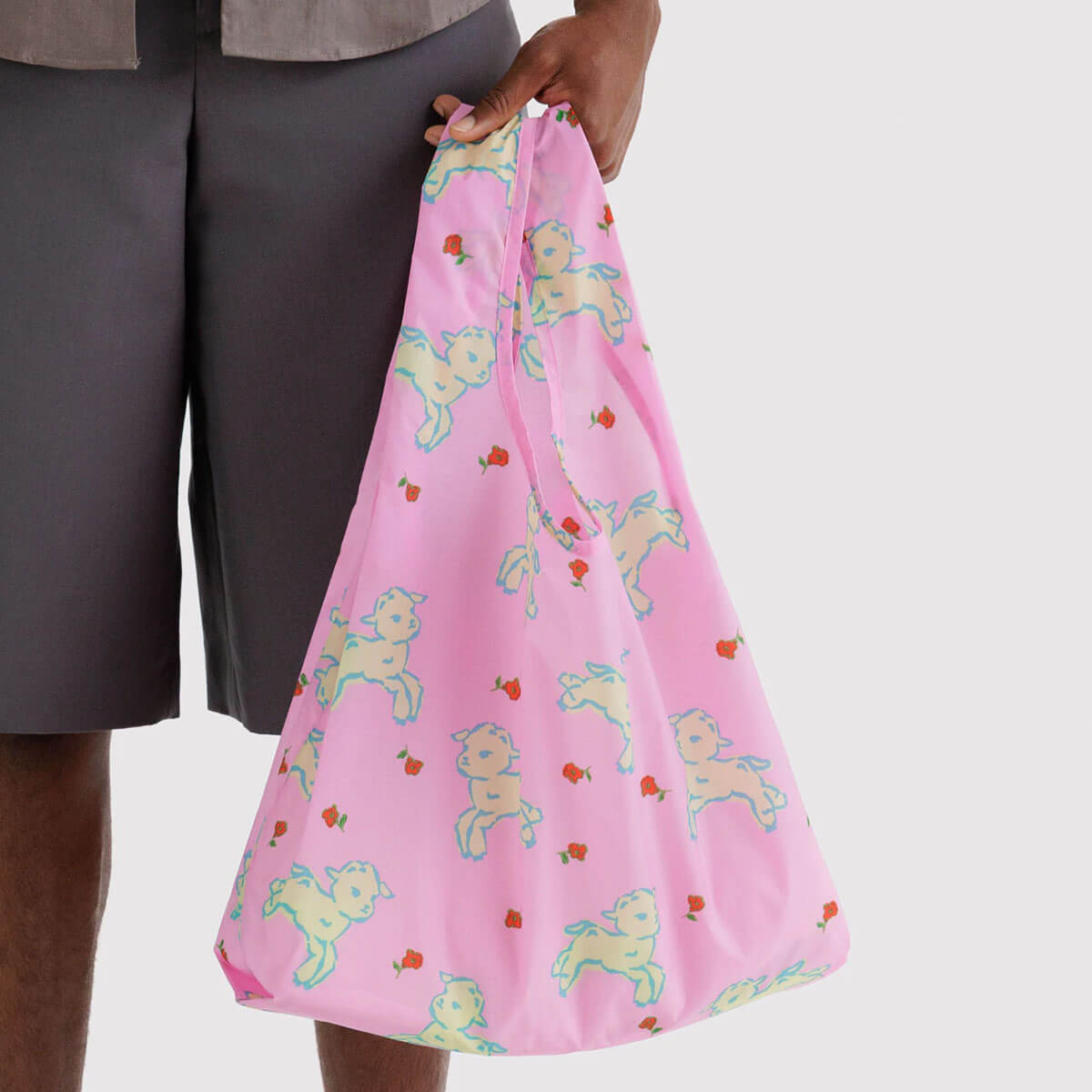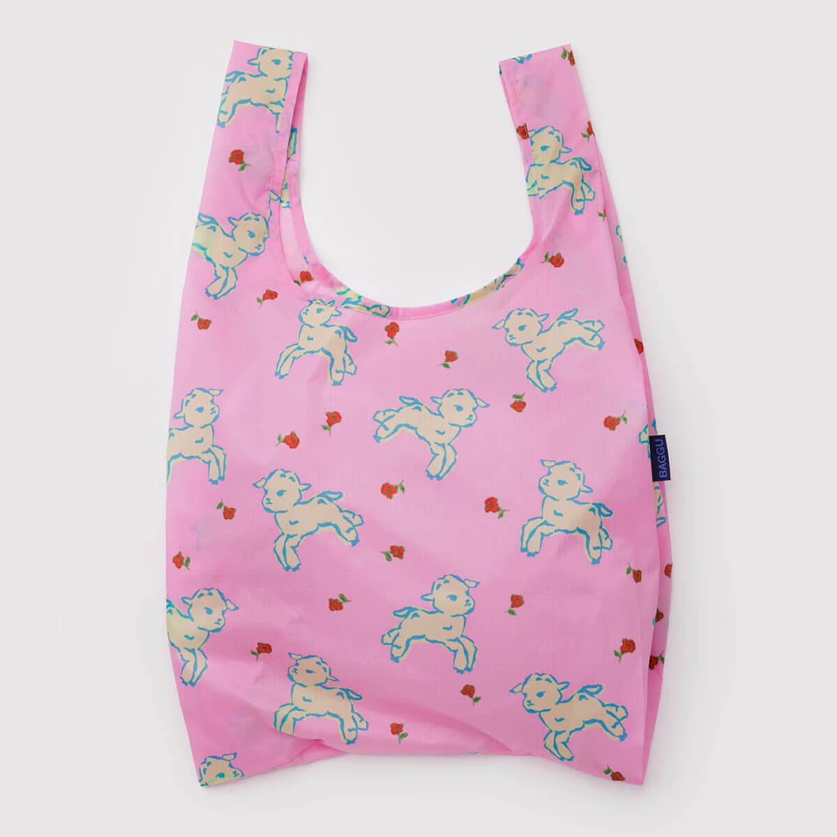 Standard bag by Baggu. Baggu's best selling reusable bag isn't just for the grocery store, it goes everywhere and hauls almost anything. Carries 2-3 plastic grocery bags worth of stuff comfortably in hand or over your shoulder.
