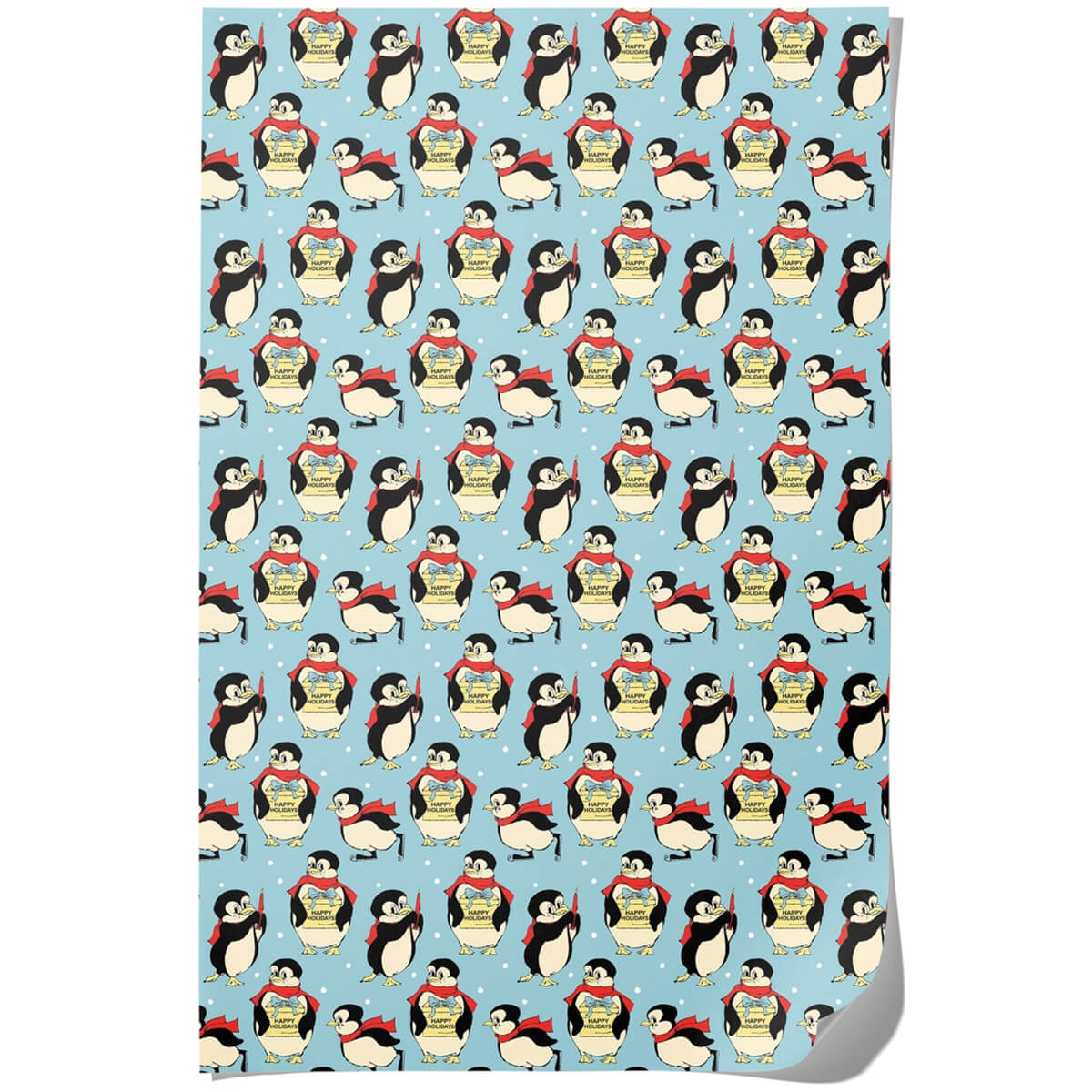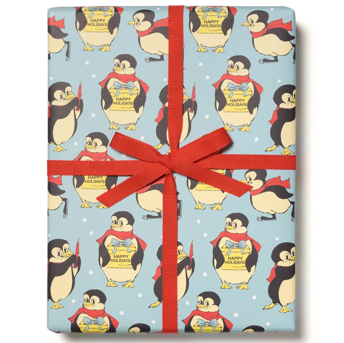Holiday Penguin gift wrap by Red Cap Cards. Roll of 3 sheets. Each sheet measures 19x27 inches. Design by Hannah-Michelle Bayley.