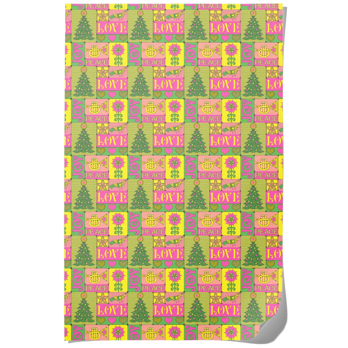 Peace, Love, Joy gift wrap by Red Cap Cards. Roll of 3 sheets. Each sheet measures 19x27 inches. Design by Nolan Pelletier.