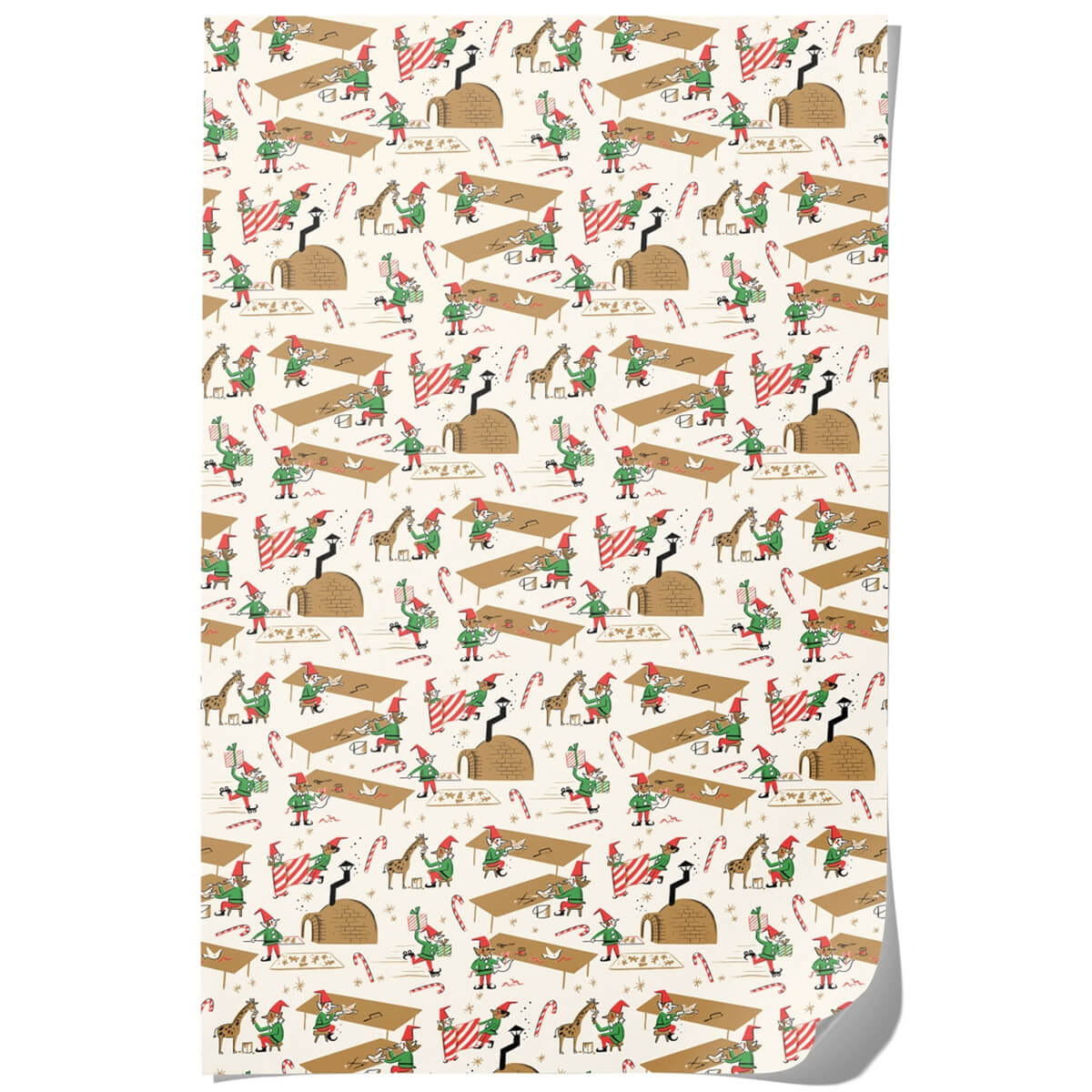 Santa's Workshop gift wrap by Red Cap Cards. Roll of 3 sheets. Each sheet measures 19x27 inches. Design by N.J.Frith.