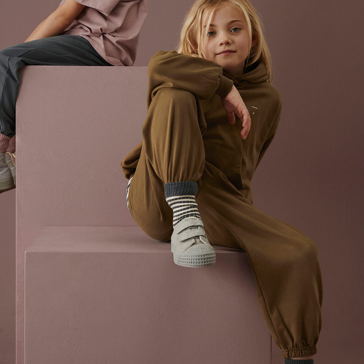 Track Pants by Gray Label. Relaxed-fit, timeless joggers made from soft organic cotton fleece. These unisex pants have an elasticated waist with adjustable drawstring and elasticated cuffs with welt pockets at the sides.