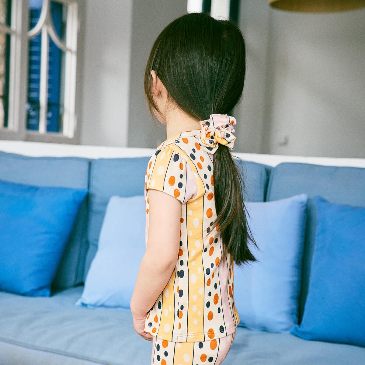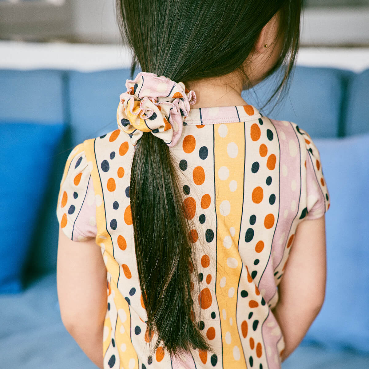 Hair Scrunchie in Frangipani Polka-Stripe by Misha & Puff