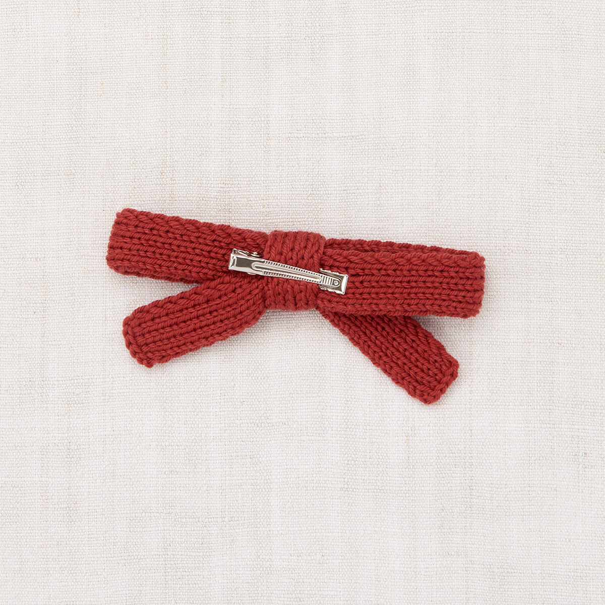 Jumbo Goldie Bow by Misha & Puff. An entirely hand-knit jumbo version of the Goldie Bow on an alligator clip in Pima cotton. Perfect for matching your favorite outfit, adding a pop of colour, or gifting to a friend.