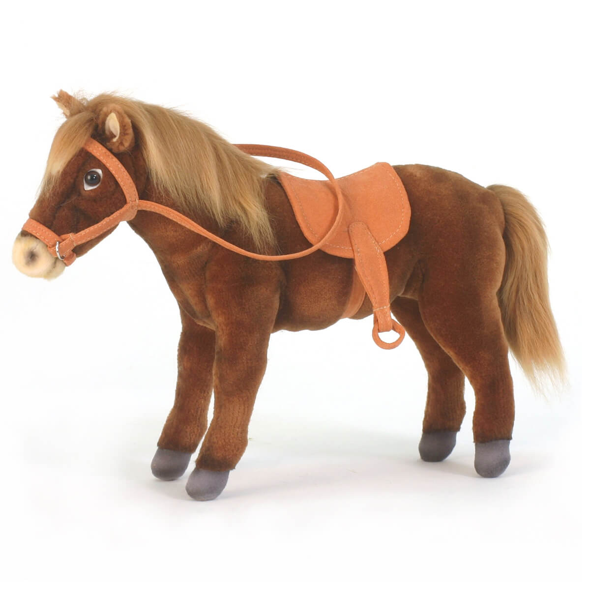 Horse With Saddle plush soft toy by Hansa. Heirloom quality hand crafted plush stuffed animal.