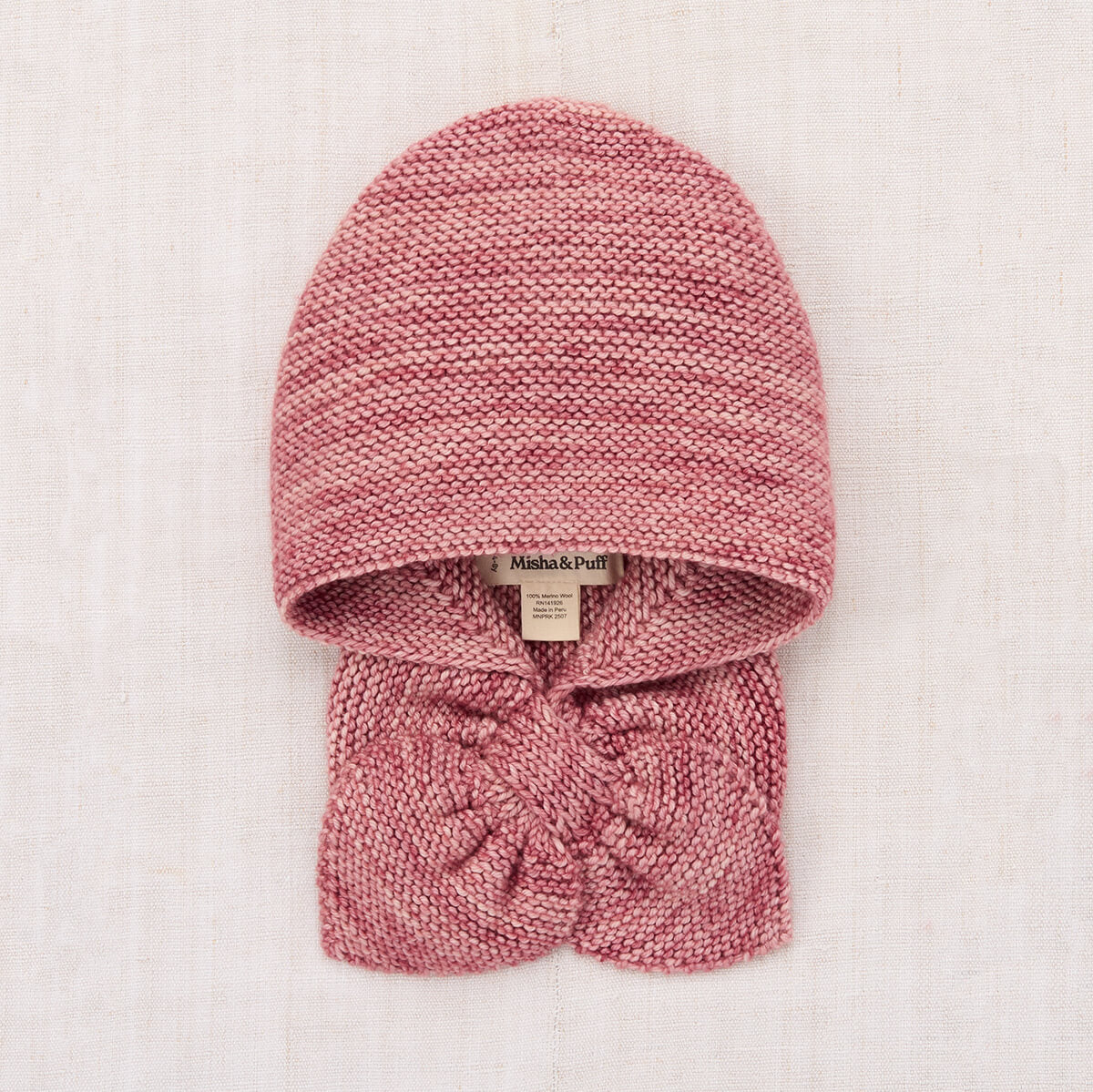 Sledding Hood by Misha & Puff. Misha & Puff’s signature hand-knit fitted hood in Merino wool, with a pull-through kerchief closure. Keeps heads and necks warm — the perfect complement to any outfit.
