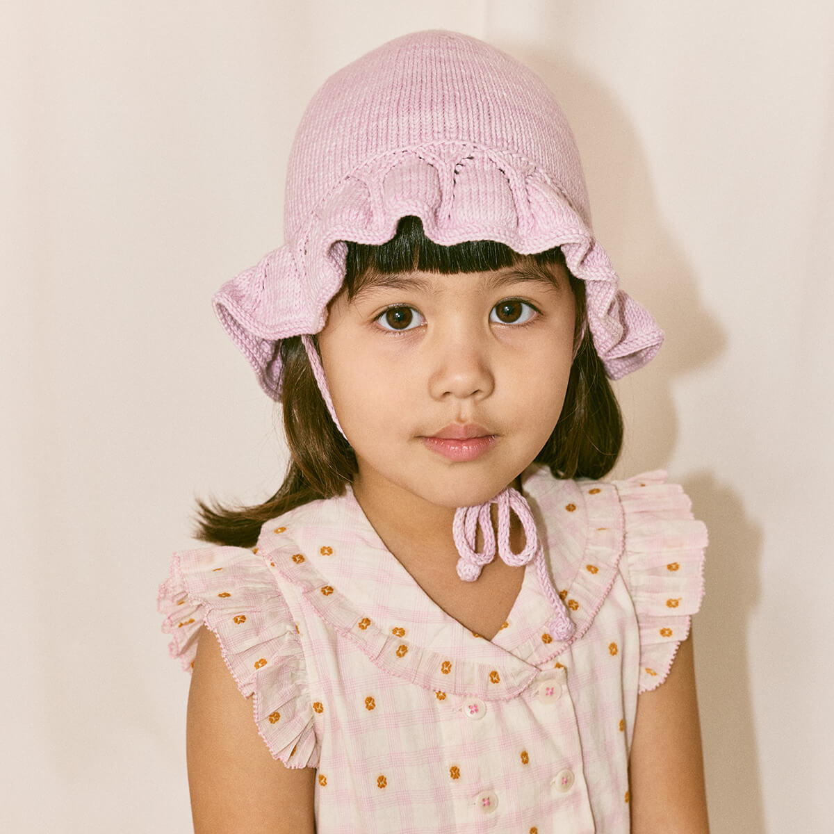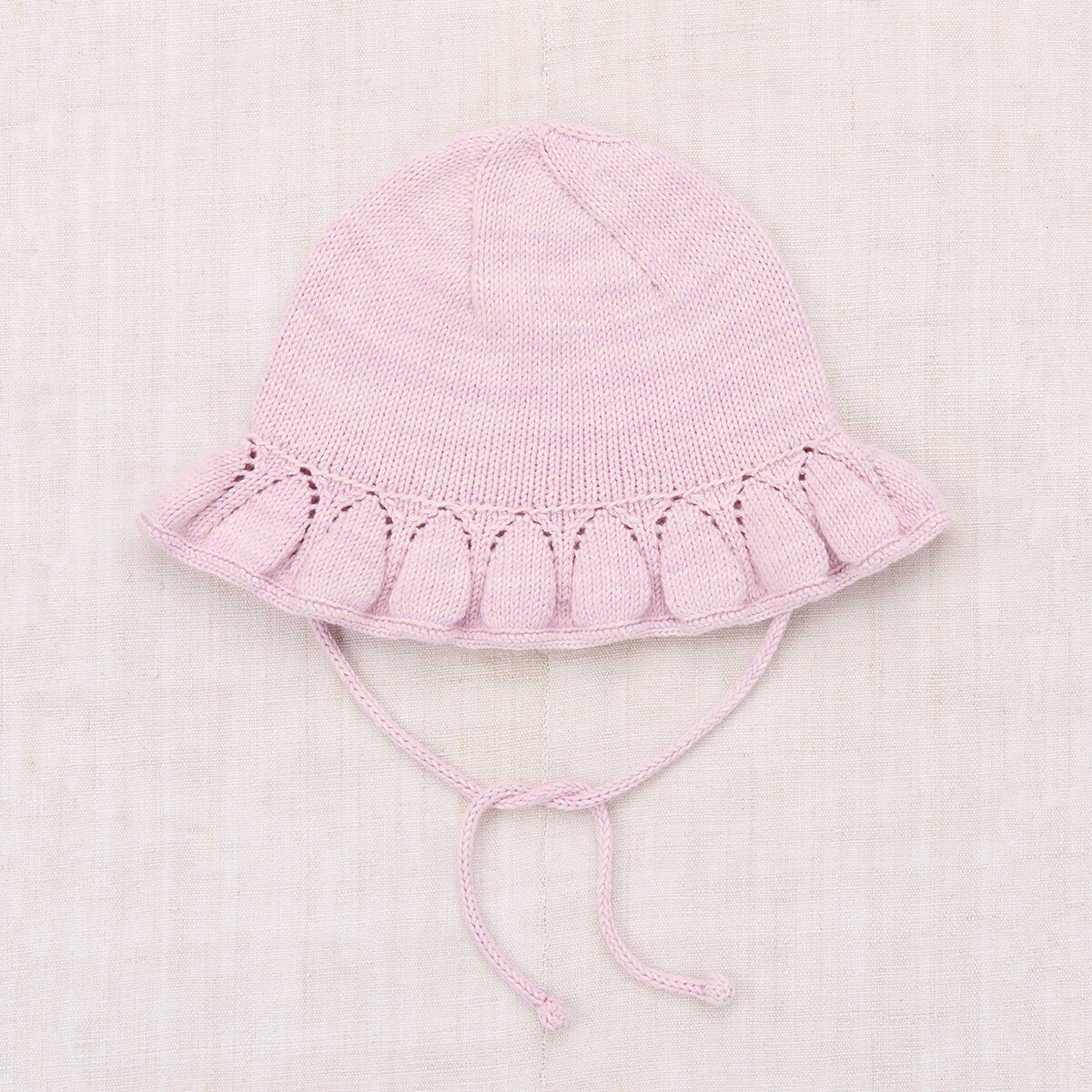 Starling Sunhat Hat by Misha & Puff. A hand-knit hat in Pima cotton, featuring a brim with eyelet stitch detail and popcorn tie closure at the chin.