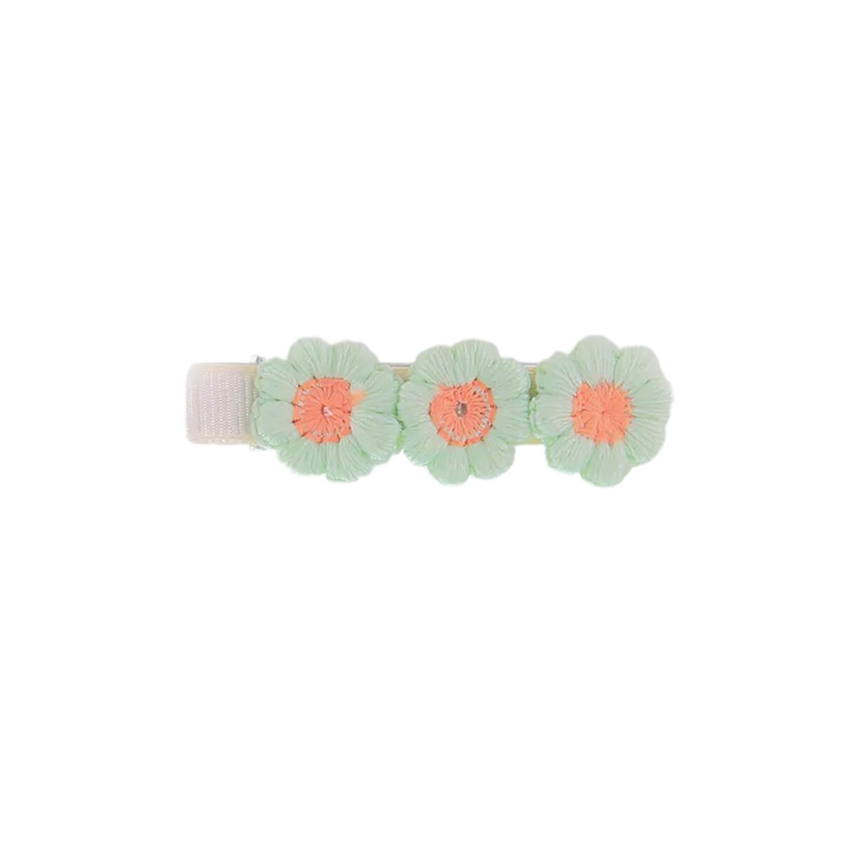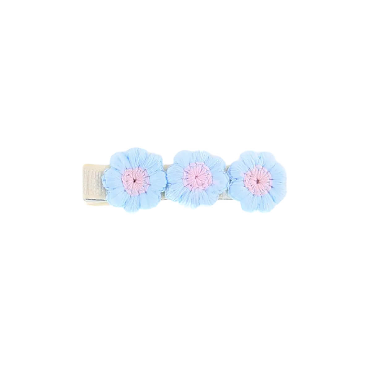 Embroidered Flower hair clip by Hello Sakura. Mini crocodile hair clip with three pretty and delicate embroidered flowers on a grosgrain ribbon covered silver tone crocodile clip.