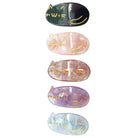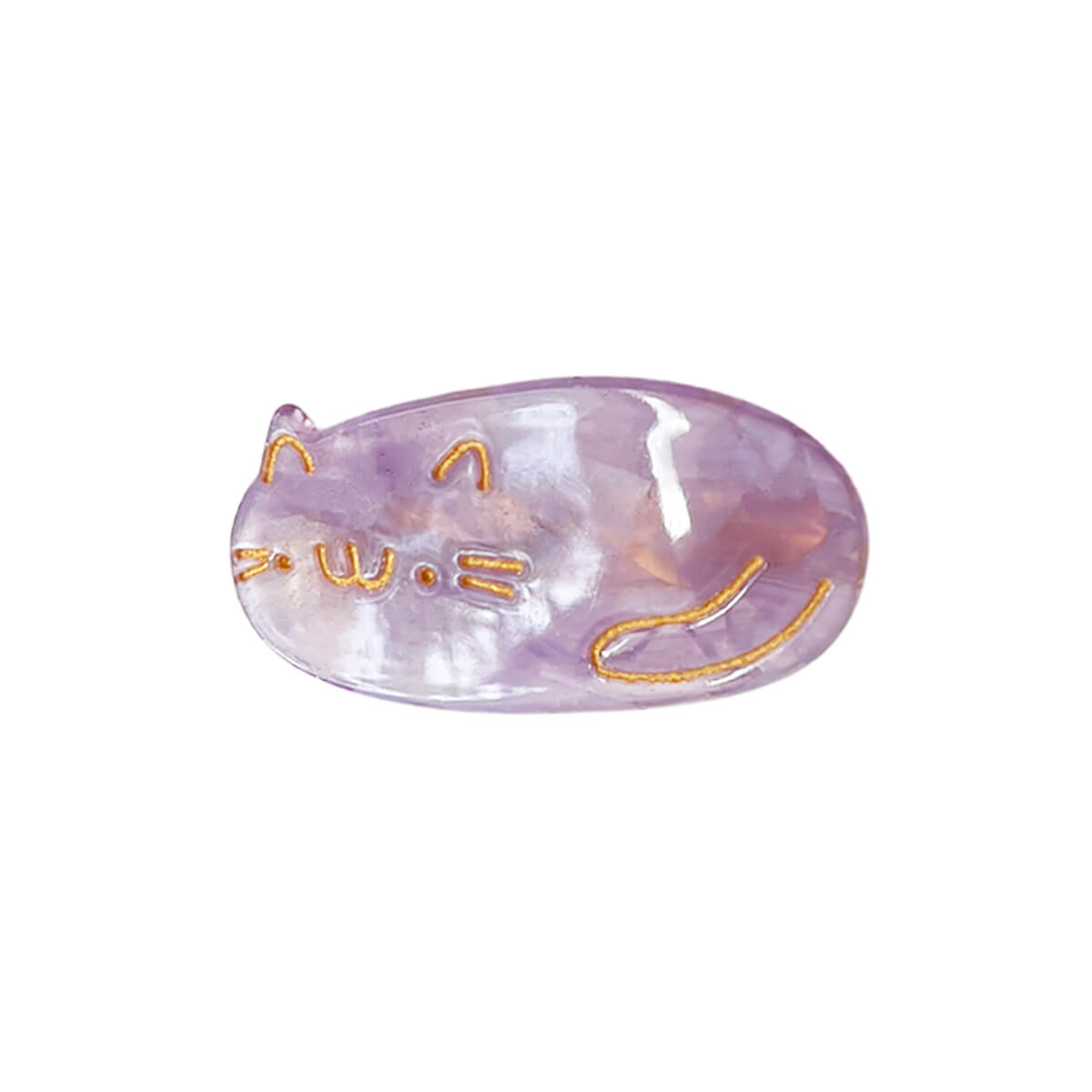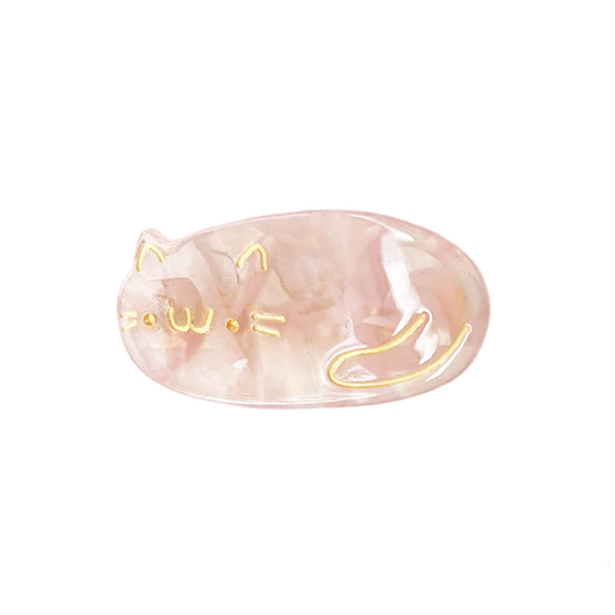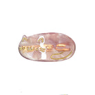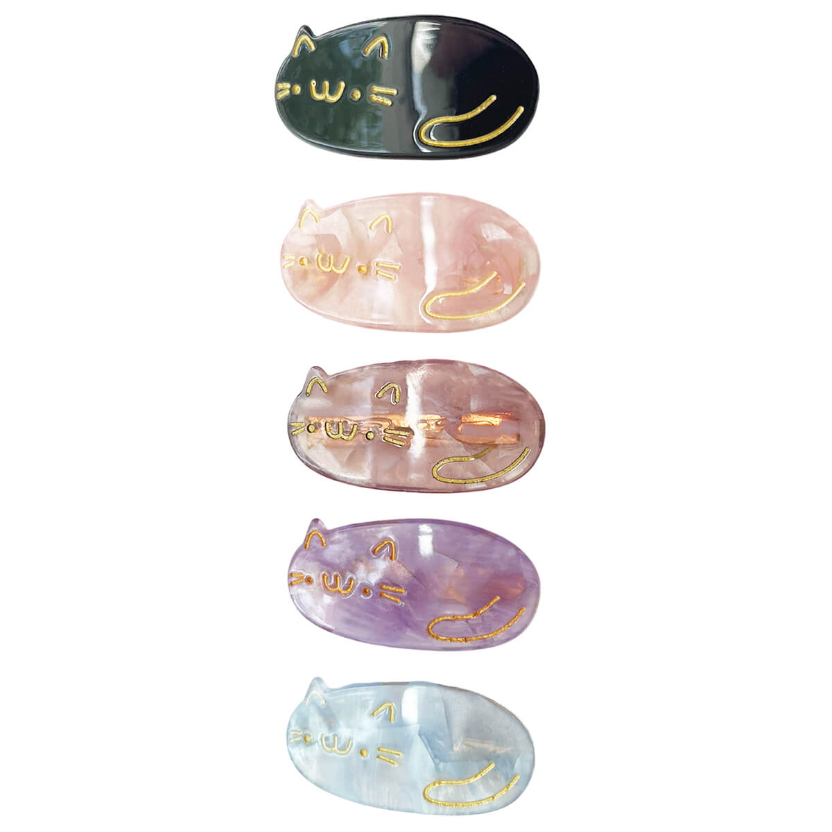 Oval Sakura Kitty hair clip by Hello Sakura. Your choice of a pretty pearly oval cat hair slide with etched gold details on a gold tone alligator hair clip. Made from plant-based eco-friendly cellulose acetate.