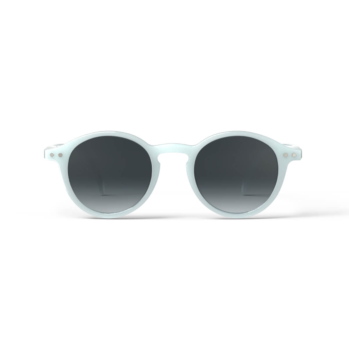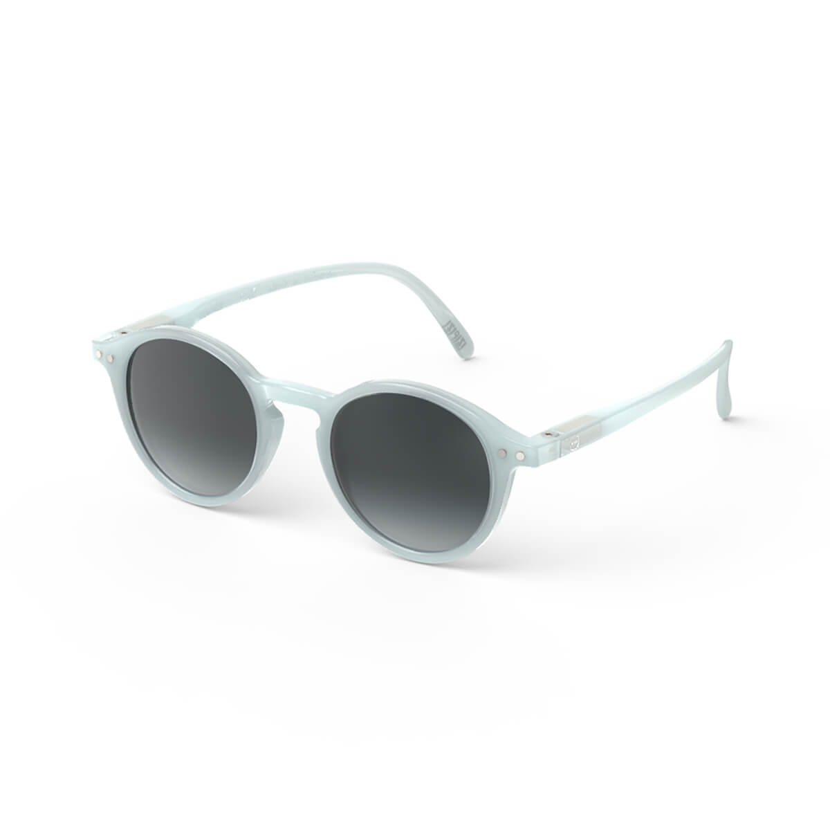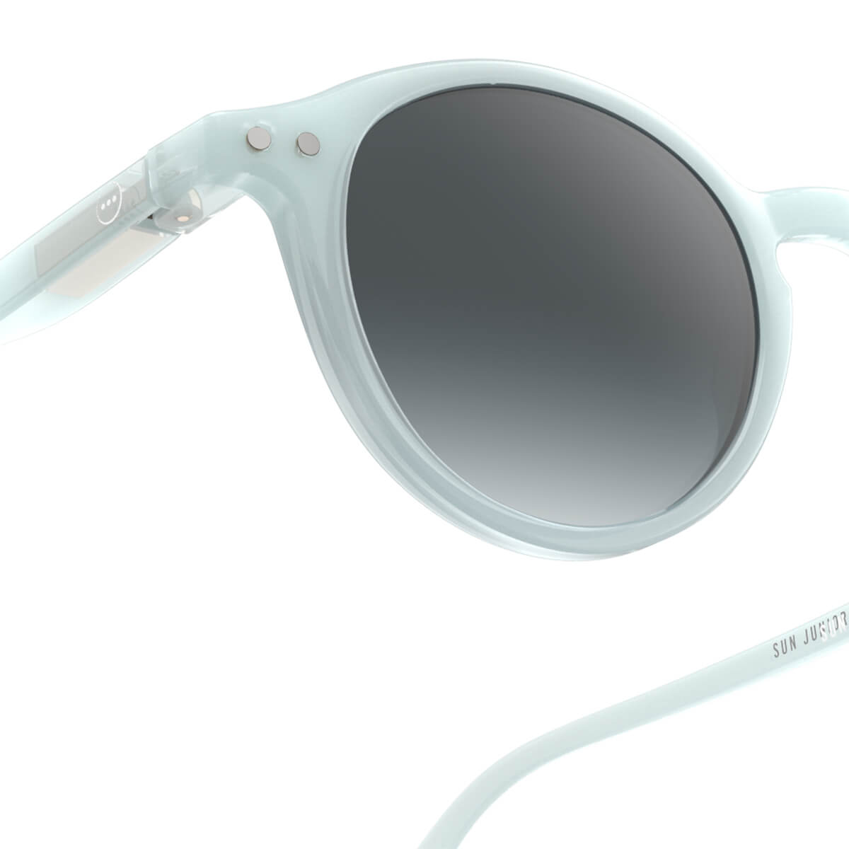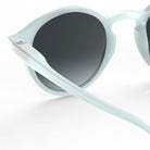 Sun Junior sunglasses style #D by Izipizi. Glossy frames in a delicate blue with a new jelly texture and shiny finish. Gradient lenses transport us from deep blue to azure. Protects your child's eyes on every occasion, for daily life in town or for outdoor activities in summer and winter - water sports, on the beach or skiing. The lenses are polarised, grey, and offer 100% UV3 protection (UV 400).  They respect the natural colours, reduce the intensity of the lights, create better contrast, and protect from glare. Flexible and comfortable arms with spring hinges which adapt to all face shapes and sizes. A storage pouch is included in the box.