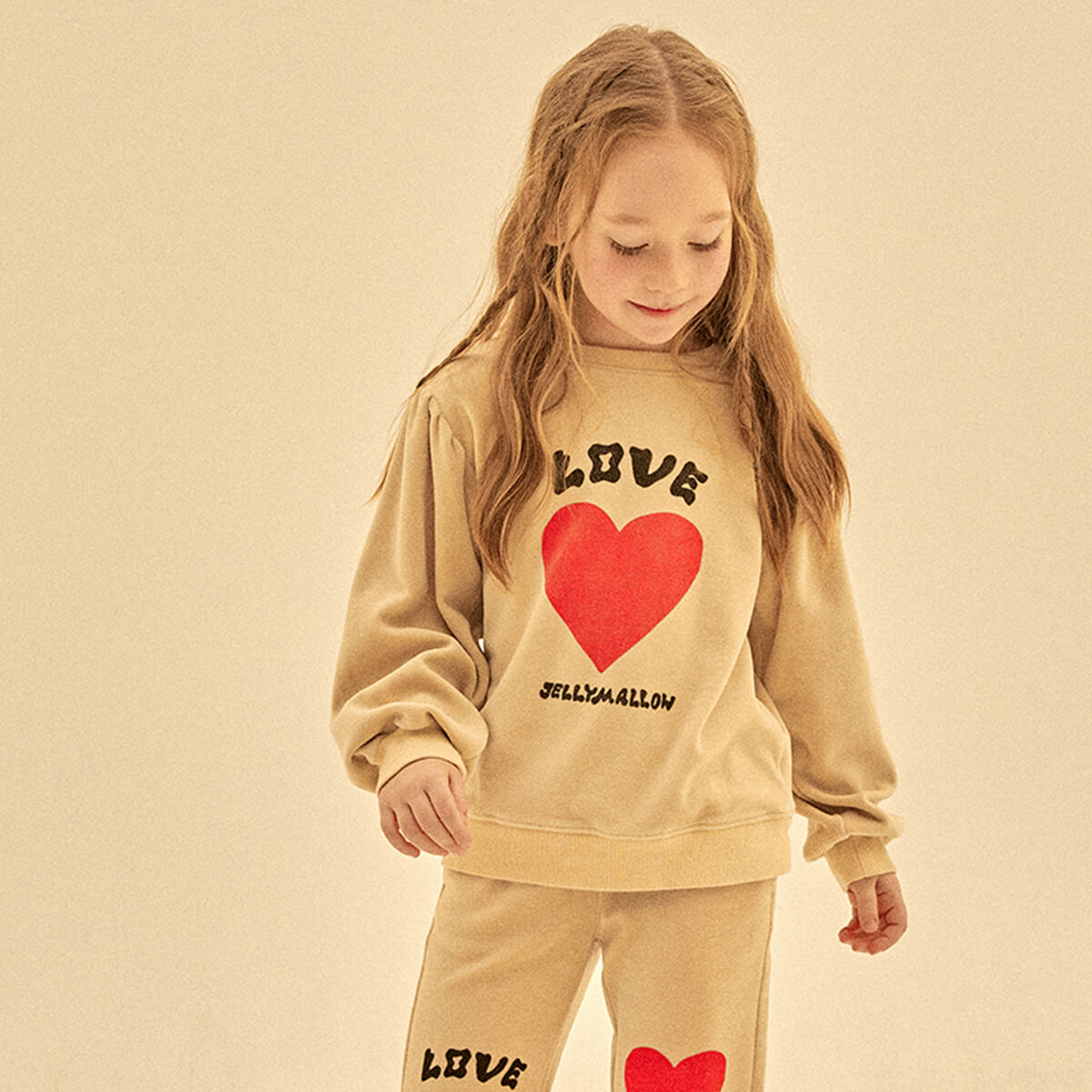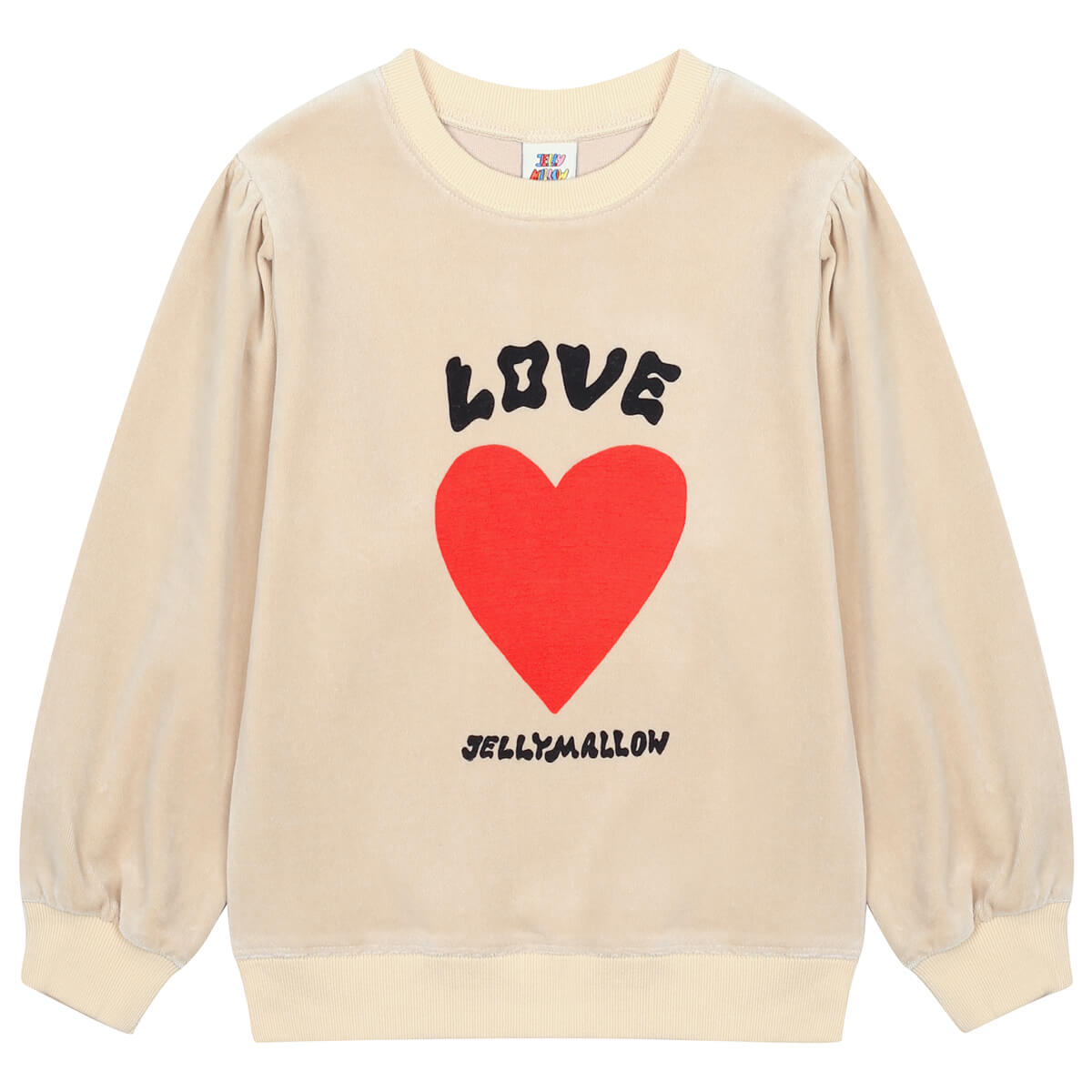 Heart Shirring Velour Sweatshirt in Light Beige by Jelly Mallow