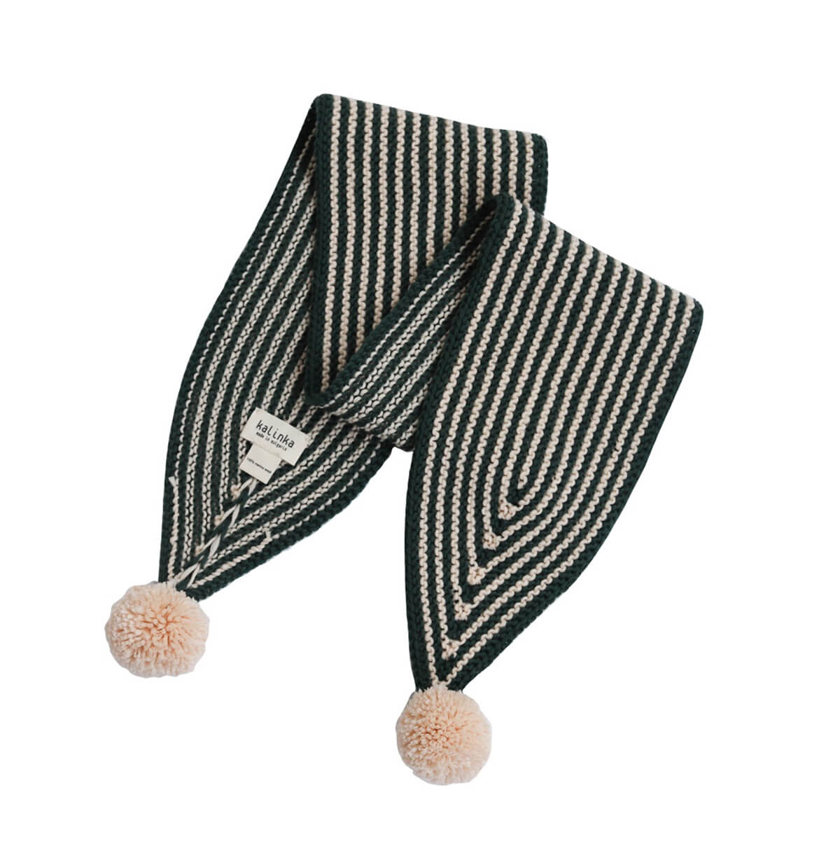 Divna Scarf by Kalinka. Keep your child warm with the soft divna knit scarf. Designed with pom poms on the ends.