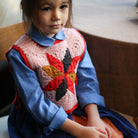 Linden Vest by Kalinka. This pretty pink knit vest has a square neckline and a beautiful star on the chest. The perfect layering piece for a transitional wardrobe.