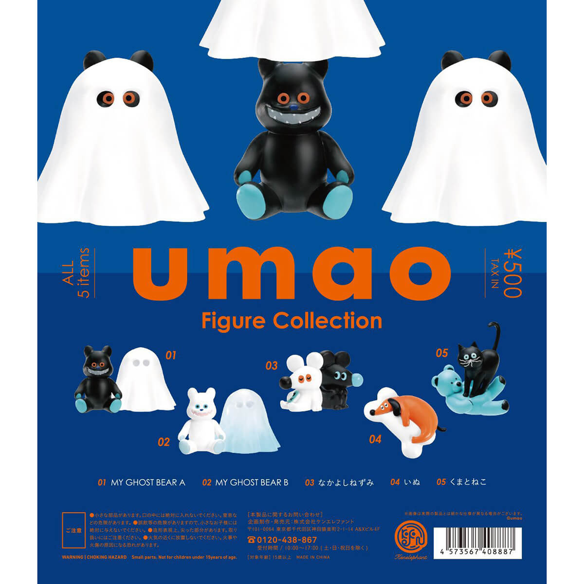 Umao Figure Gachapon Capsule Collectible by KenElephant. Highly collectible and authentic Japanese gachapon capsule containing one of five Ghost Bear miniature figures by artist Umao. Umao's cute animals, which have been released in various forms such as collectible soft vinyl figures and miniature capsule toys, appear as ghosts in this gachapon series.