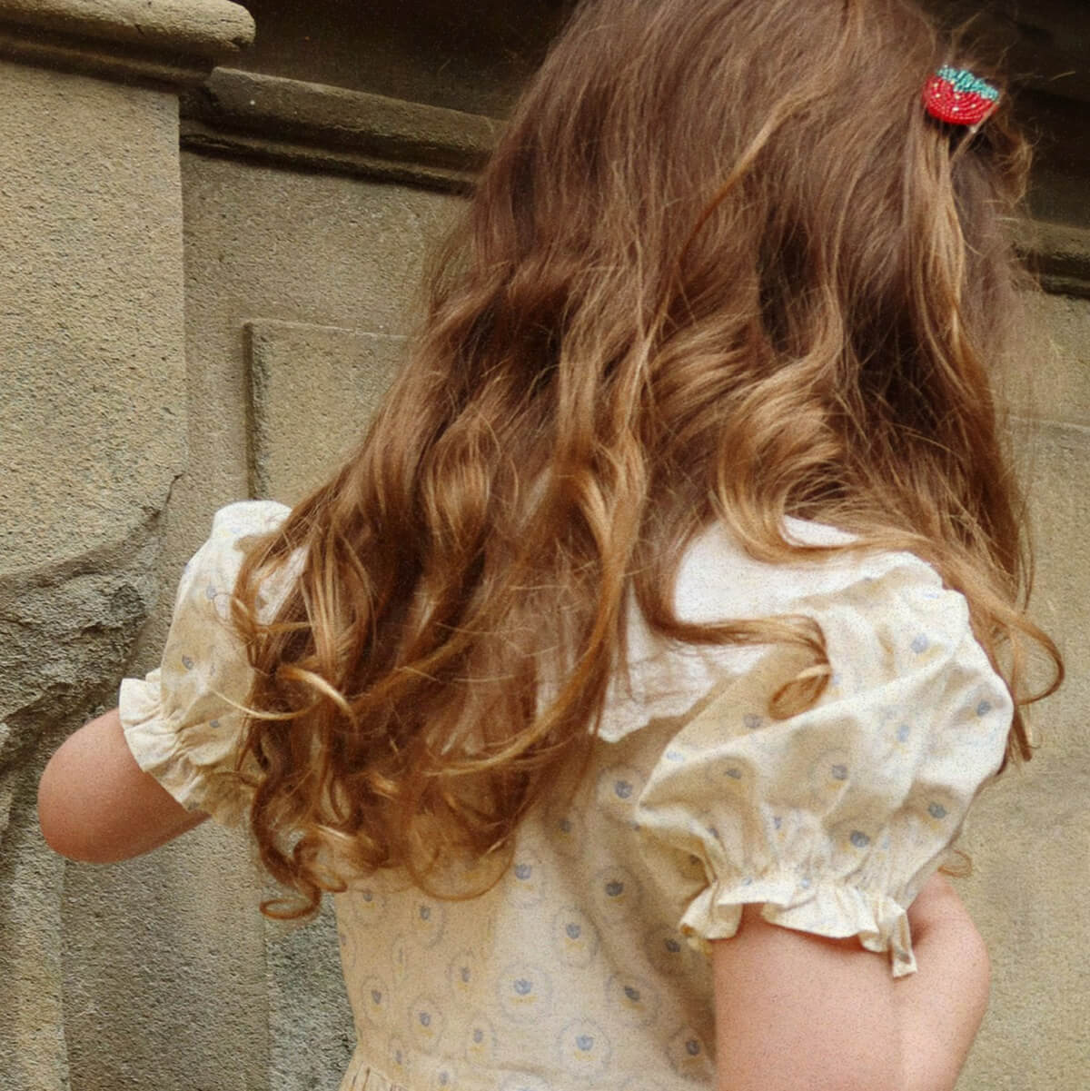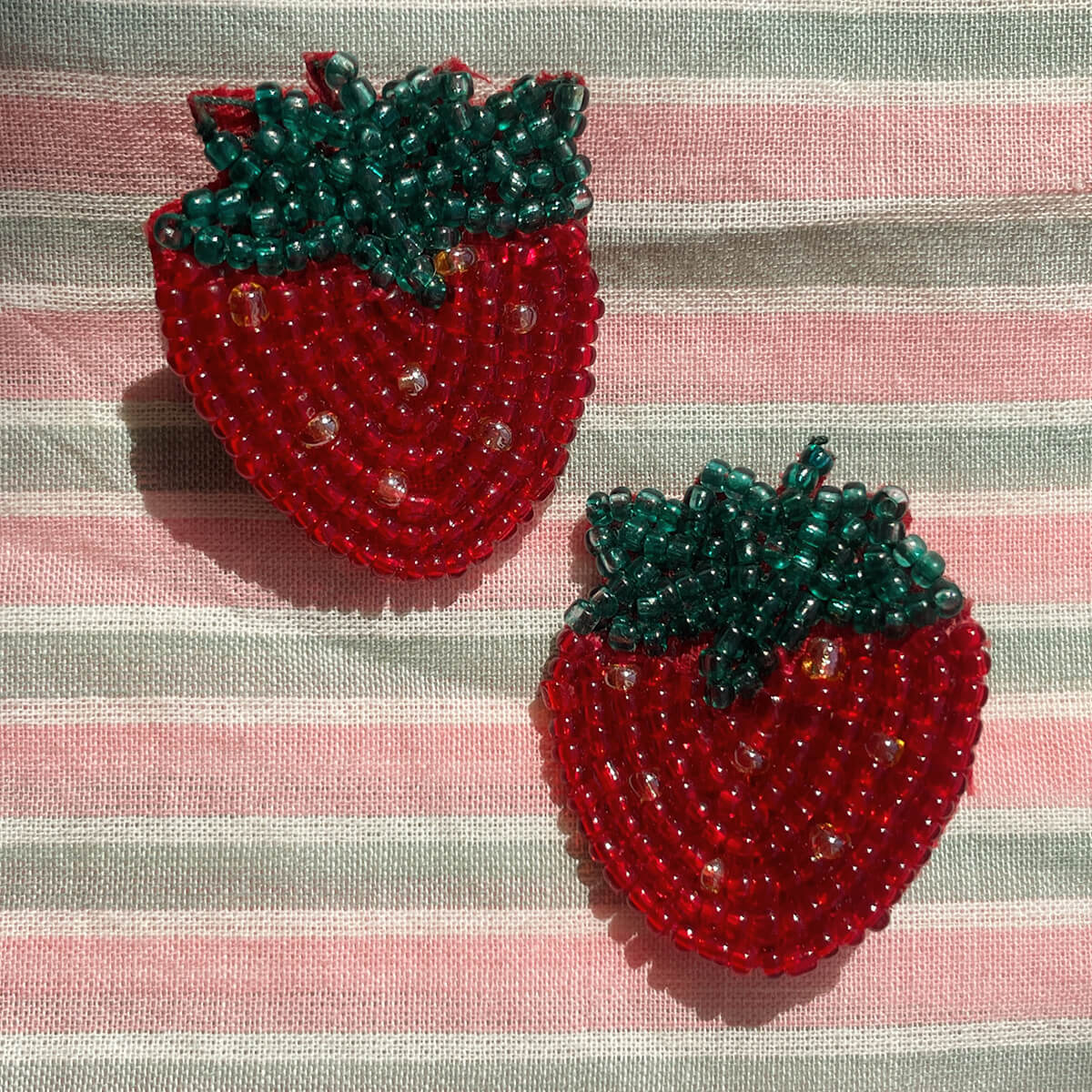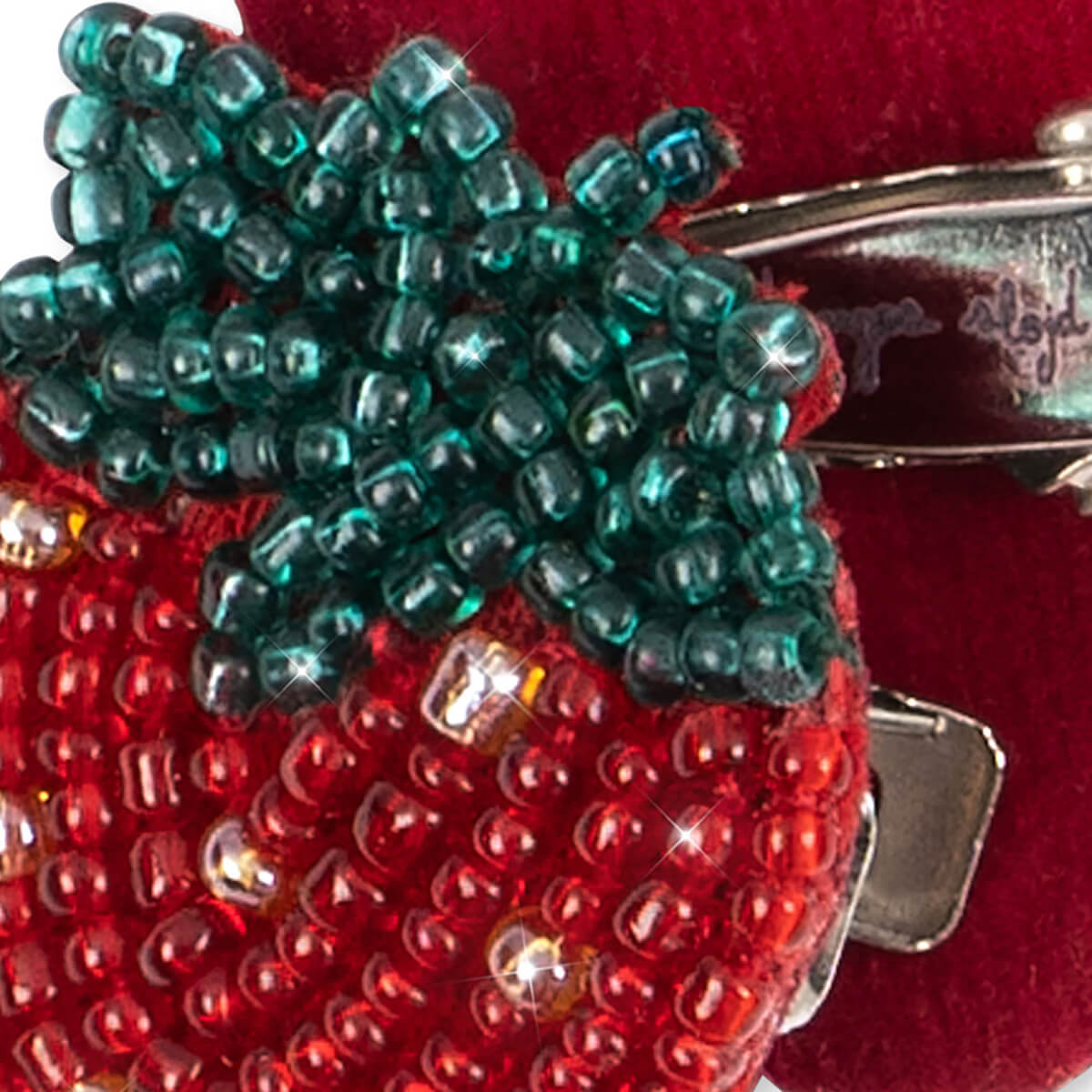 Strawberry Hair Clips (2 Pack) by Konges Sløjd. Sweet strawberry hair clips made with decorative hand-sewn glass beads. A cute little accessory with plenty of personality and details. Wear as the cutest finishing touch to your outfit.