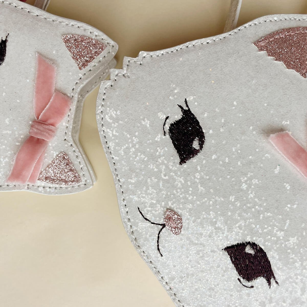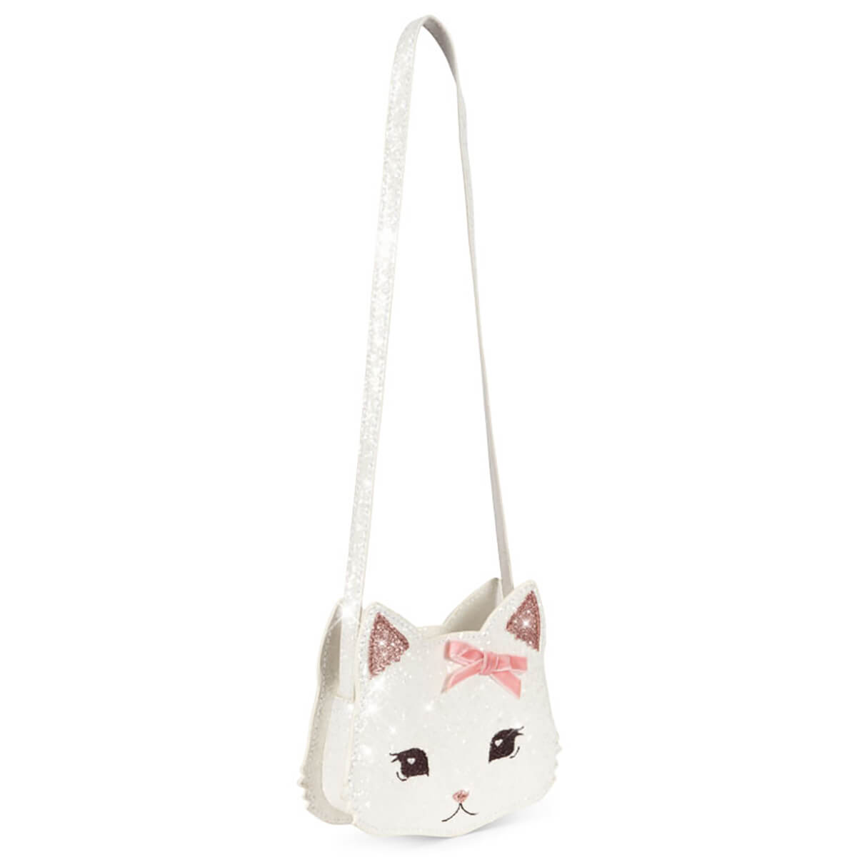 Tut Kitty Shoulder Bag by Konges Slojd. Sparkly kitty shoulder bag with a slim strap. Designed with one compartment and zipper closure.