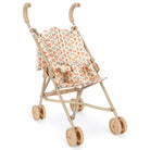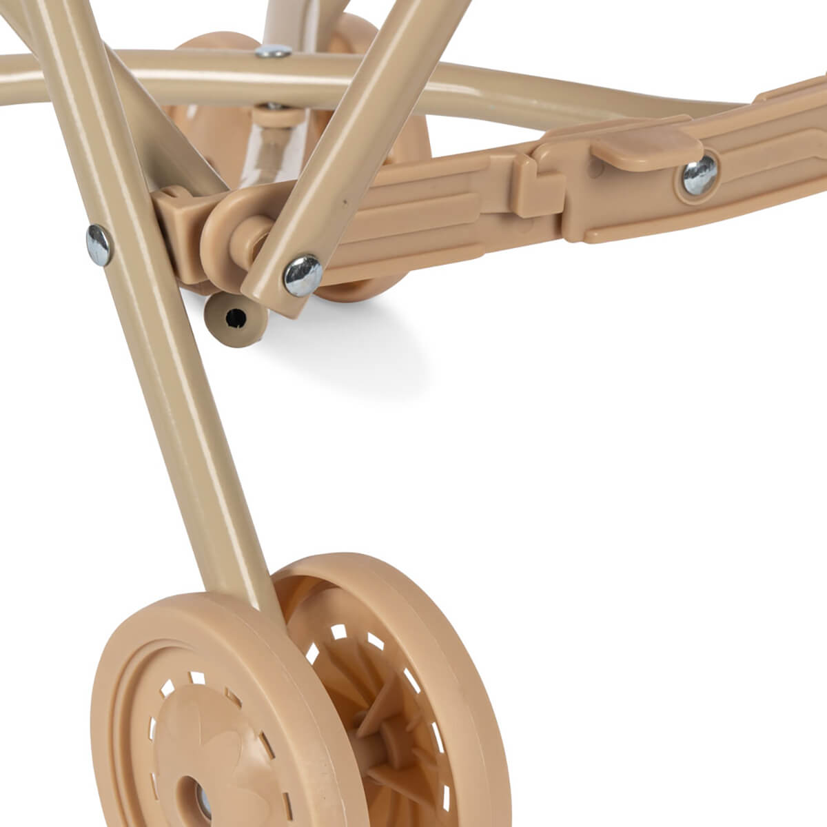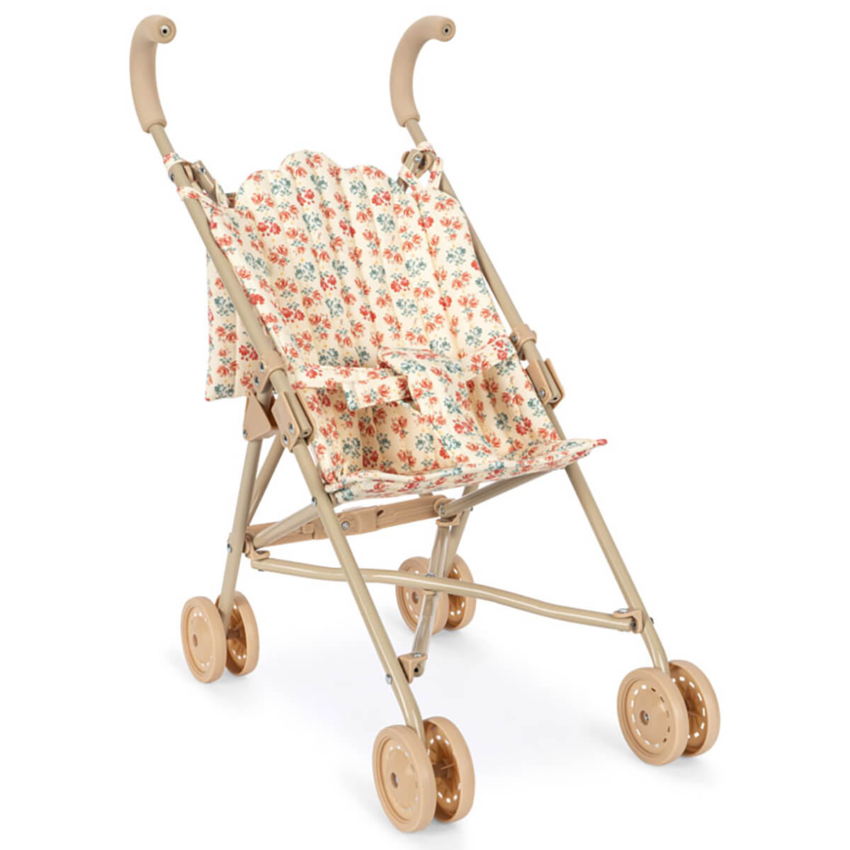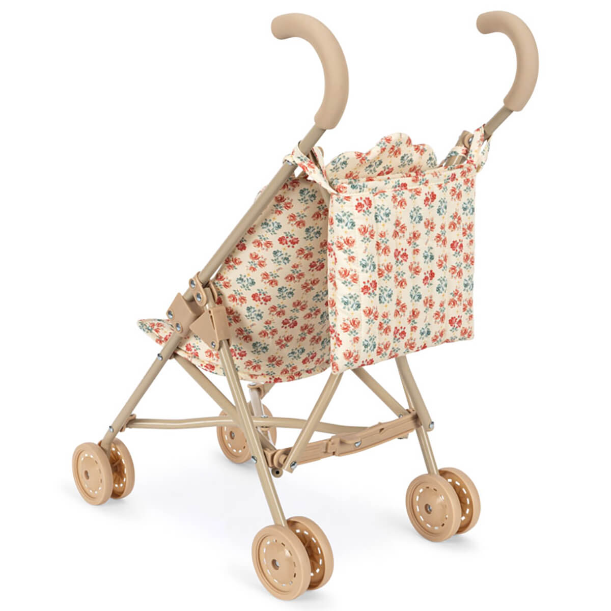 Doll Stroller by Konges Sløjd. Doll pushchair with a harness, carriage bag and double wheels on all four legs for extra stability. Features removable fabric made in 100% organic cotton. Comes fully assembled. Easy to fold and store. The frame is made of iron with soft and spongy EVA material at the handles.